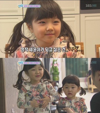 정웅인 딸 정세윤 양은 할리우드 배우 톰 크루즈의 딸인 수리처럼 빼어난 미모와 남다른 패션 감각을 자랑한다는 이유로 ‘한국의 수리 크루즈’라고 불리기도 했다. 정웅인 부녀는 최근 하차한 가수 김진표 부녀의 공백을 메우게 된다.