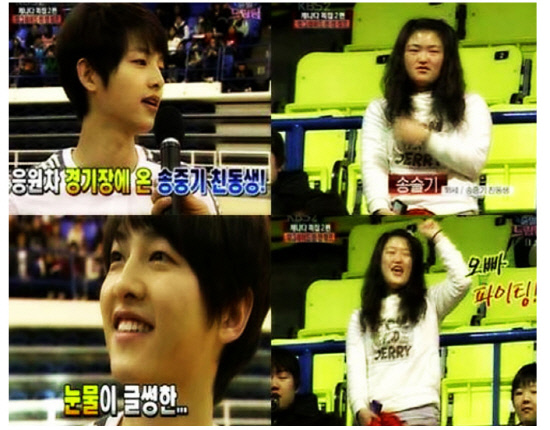 송중기 여동생은 2010년 1월 방송된 KBS 2TV ‘출발 드림팀’ 촬영 현장을 찾아 송중기를 응원하는 모습이 전파를 탔다.