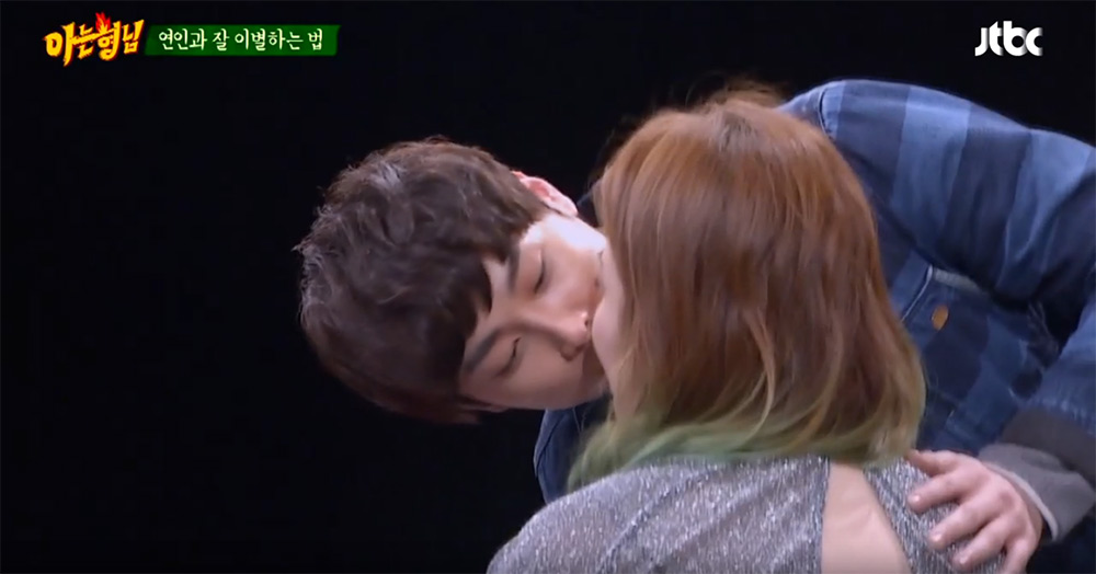 민경훈이 이국주와의 이별 상황극에서 실제로 입맞춤을 했다.