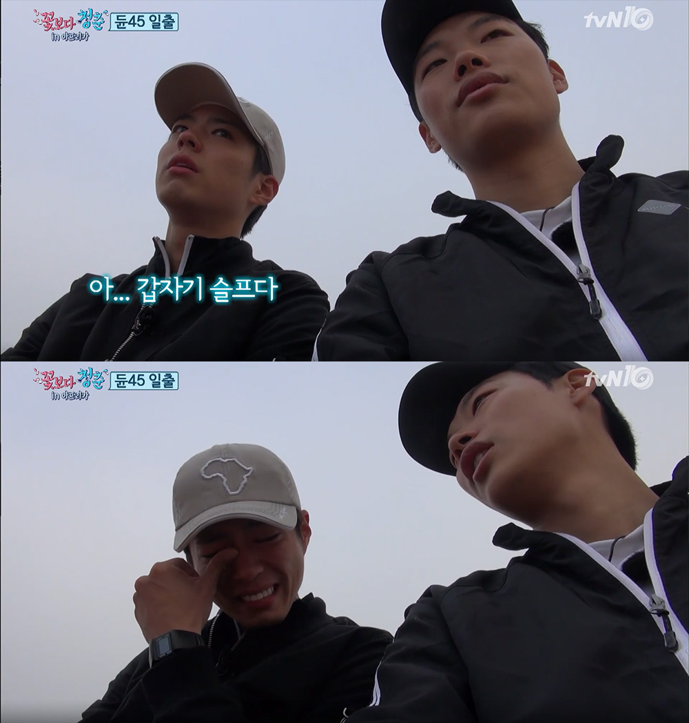 ‘꽃보다 청춘 아프리카’에 출연하는 박보검과 류준열이 가족 이야기에 눈물을 흘렸다.