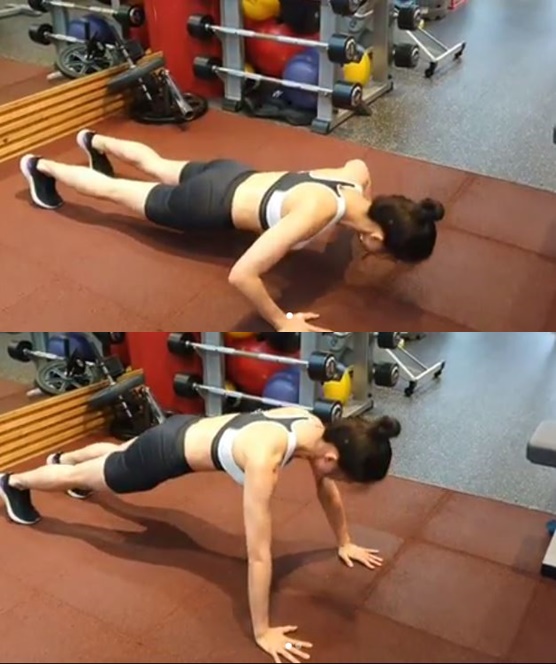 영상에는 이시영이 헬스장에서 팔굽혀펴기를 하는 모습이 담겼다. 이시영은 탄탄한 팔근육으로 정확한 자세의 팔굽혀펴기를 해 보는 이들의 감탄을 자아냈다.