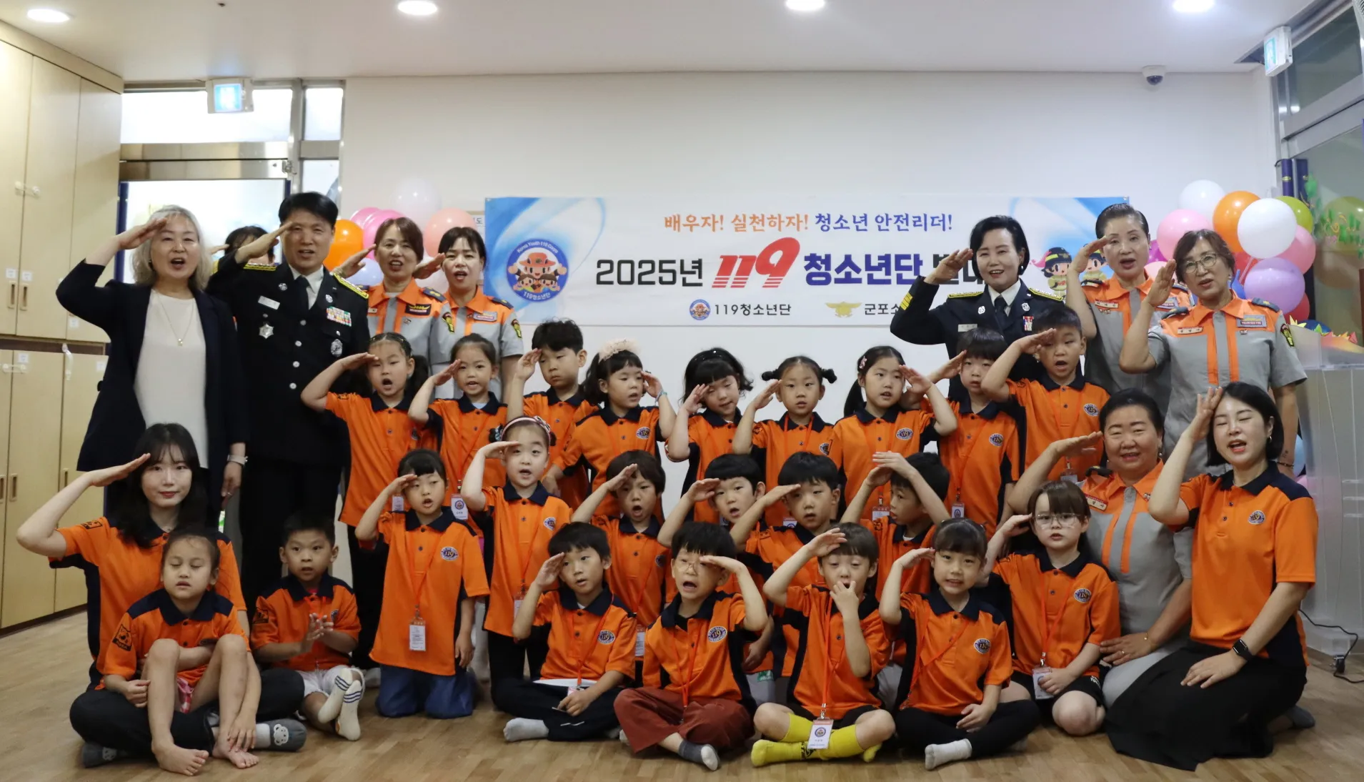 군포119청소년단은 수리동어린이집을 포함해 총 5개 대, 108명의 단원으로 구성되어 있으며, 앞으로 1년 동안 화재 예방법, 재난 대응법, 응급처치 방법 등을 안전과 관련된 다양한 내용을 체계적으로 배우며 안전의식을 키워나갈 예정입니다.