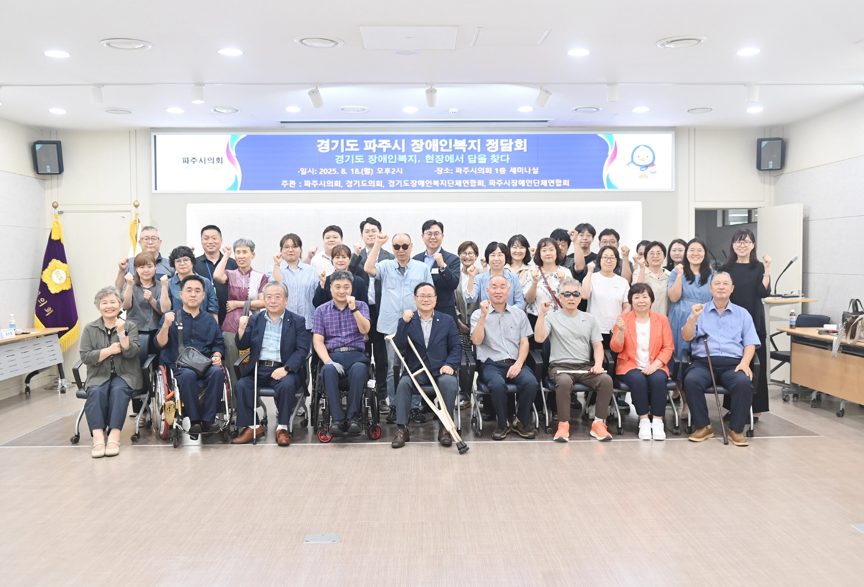 이번 정담회는 경기도의회, 파주시의회, 경기도장애인복지단체연합회, 파주시장애인단체연합회가 공동 주관했으며, 파주시 장애인복지단체 관계자 등 40여 명이 참석했다.