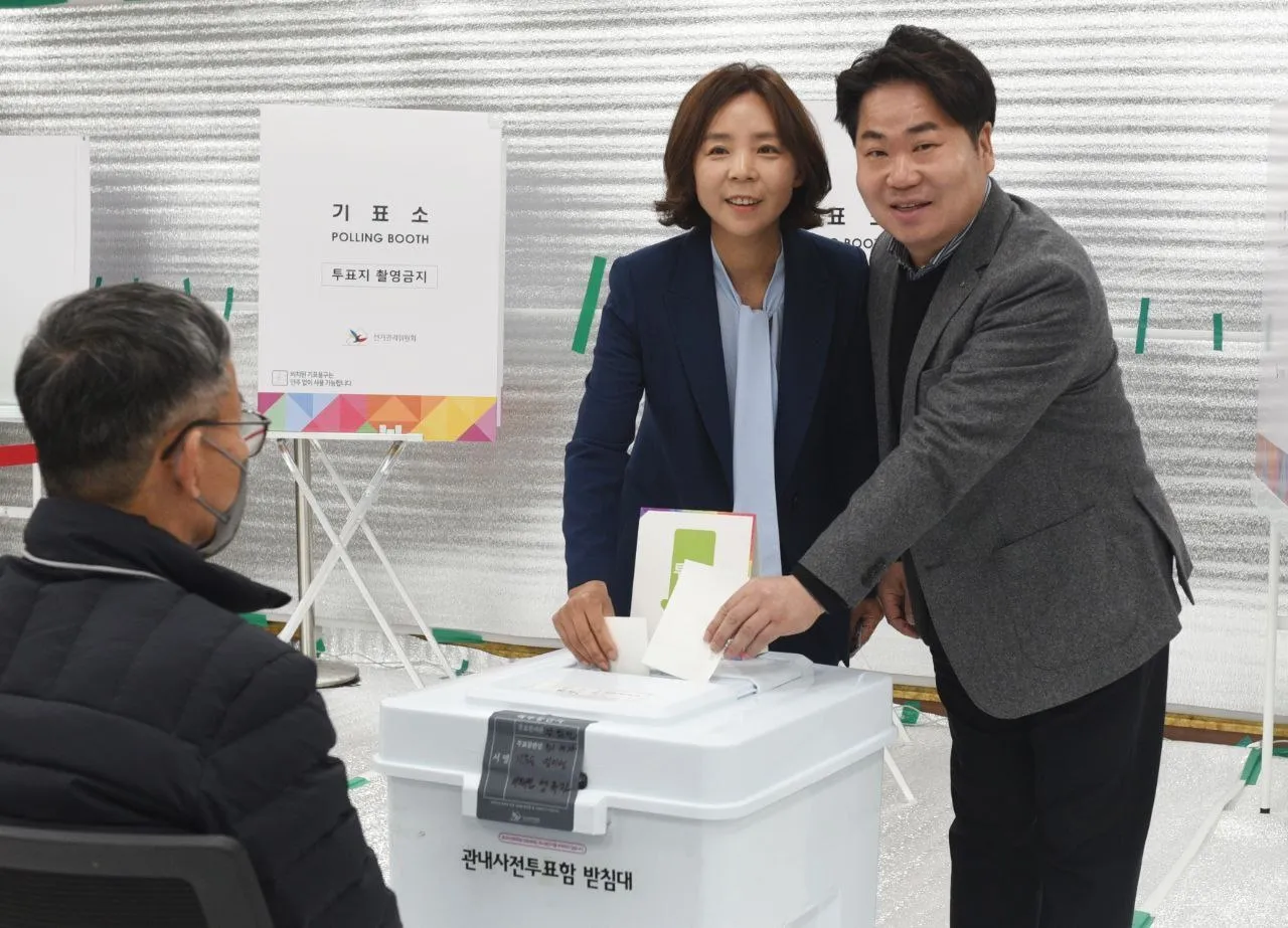 오세현 민주당 아산시장 후보, 배우자와 사전투표