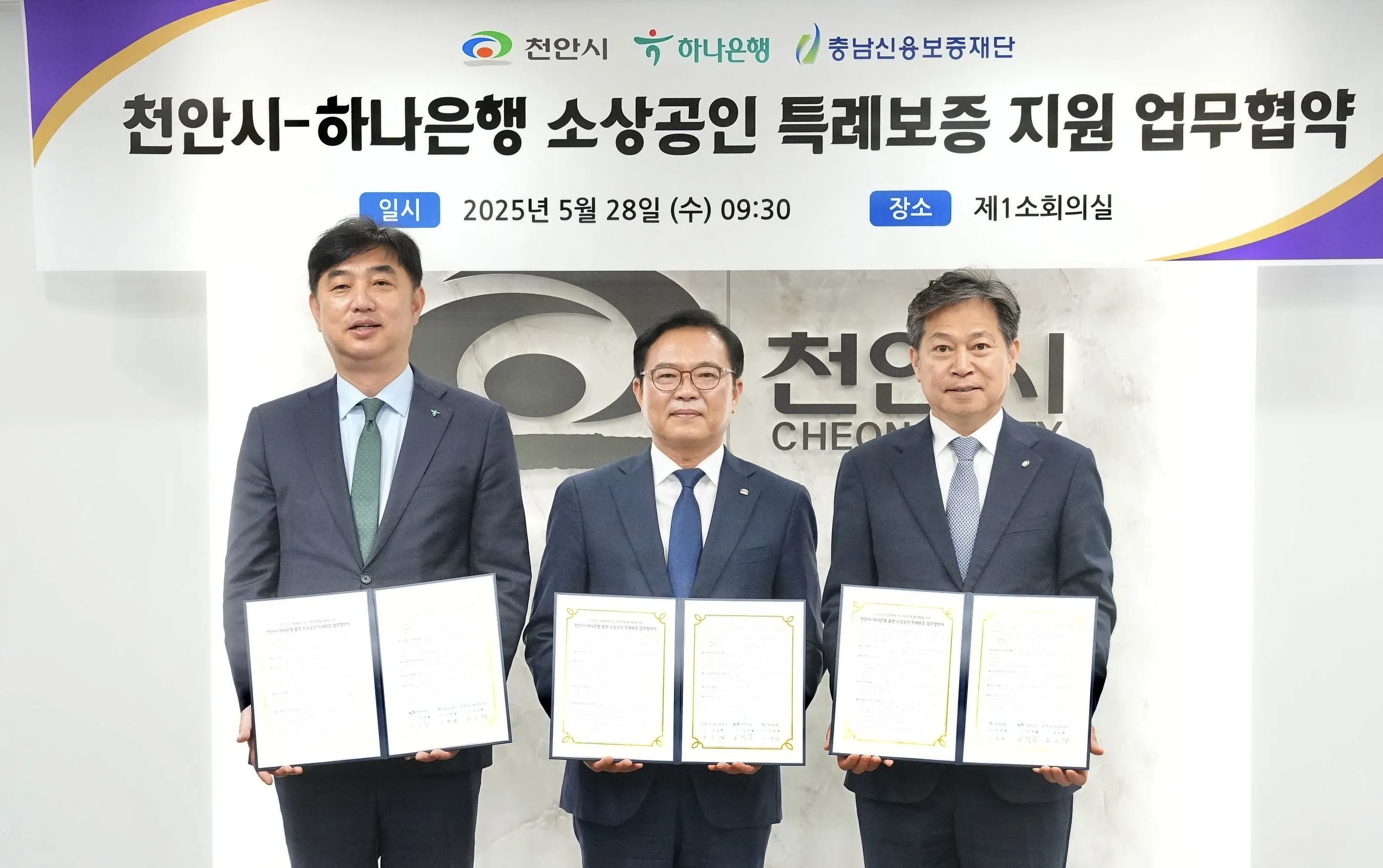 시는 28일 하나은행, 충남신용보증재단과 ‘2025 소상공인 특례보증 업무협약’을 체결했다.