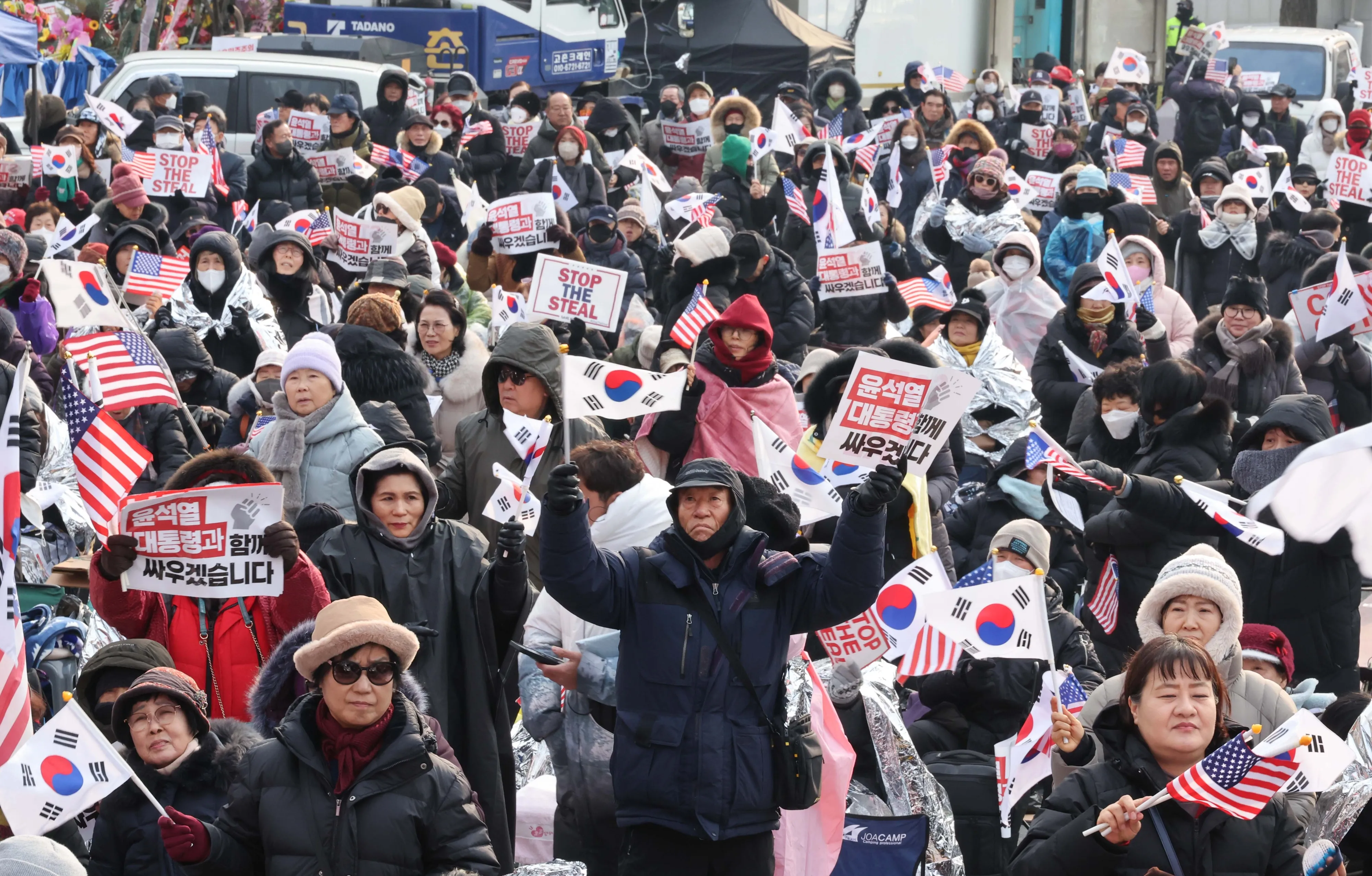 13일 오전 서울 용산구 한남동 대통령 관저 인근에서 보수단체가 주최한 탄핵 반대 집회가 열리고 있다. 2025.1.13. 연합뉴스