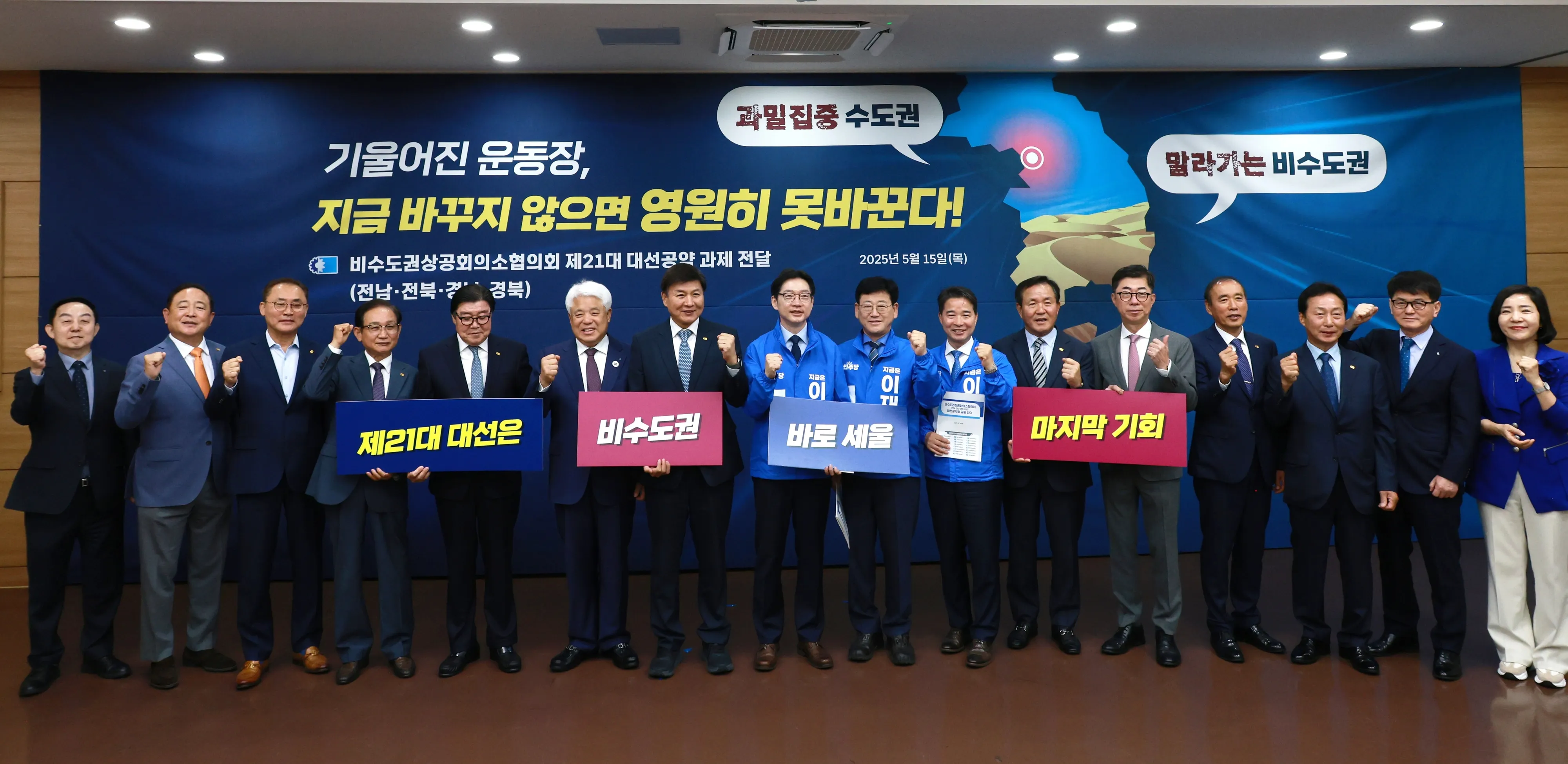 경남·경북·전남·전북이 함께하는 비수도권상공회의소협의회가 15일 지역균형발전을 위한 대선공약화 과제를 발표하고 더불어민주당 대선캠프에 전달했다.
