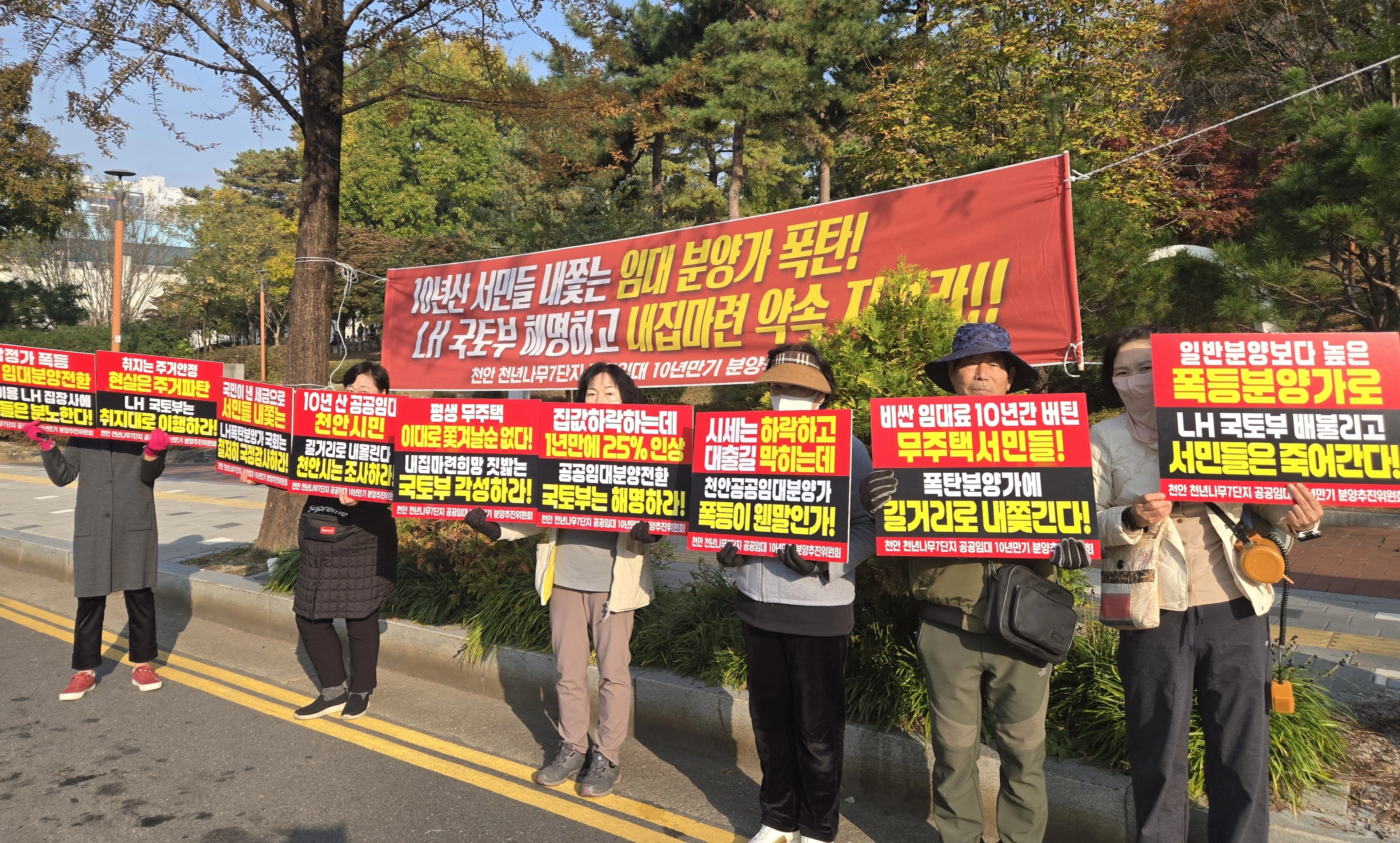 추진위 관계자는 “공공임대주택 본래 취지에 부합한 제도 개선이 되지 않는다면 노숙 투쟁이라도 감행하겠다”며 “서민들의 내 집 마련 꿈을 지키고 주택정책 목표가 올바르게 실현될 수 있도록 정부와 천안시 등이 함께 나서달라”고 강조했다.