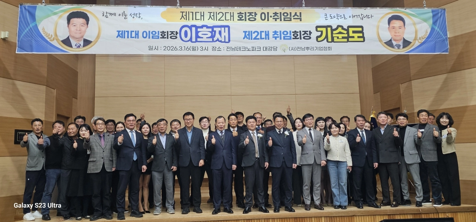 전남뿌리기업협동조합 이사장과 전남뿌리기업협회 초대 회장을 맡아 지난 7년 동안 전남 뿌리기업의 위상을 공고히 하고, 회원 간 화합과 조직을 안정적으로 이끌어왔다는 평가를 받은 이호재(㈜프라임이엔지 대표) 이임회장은 상임고문으로 물러나 협회를 뒷받침한다.