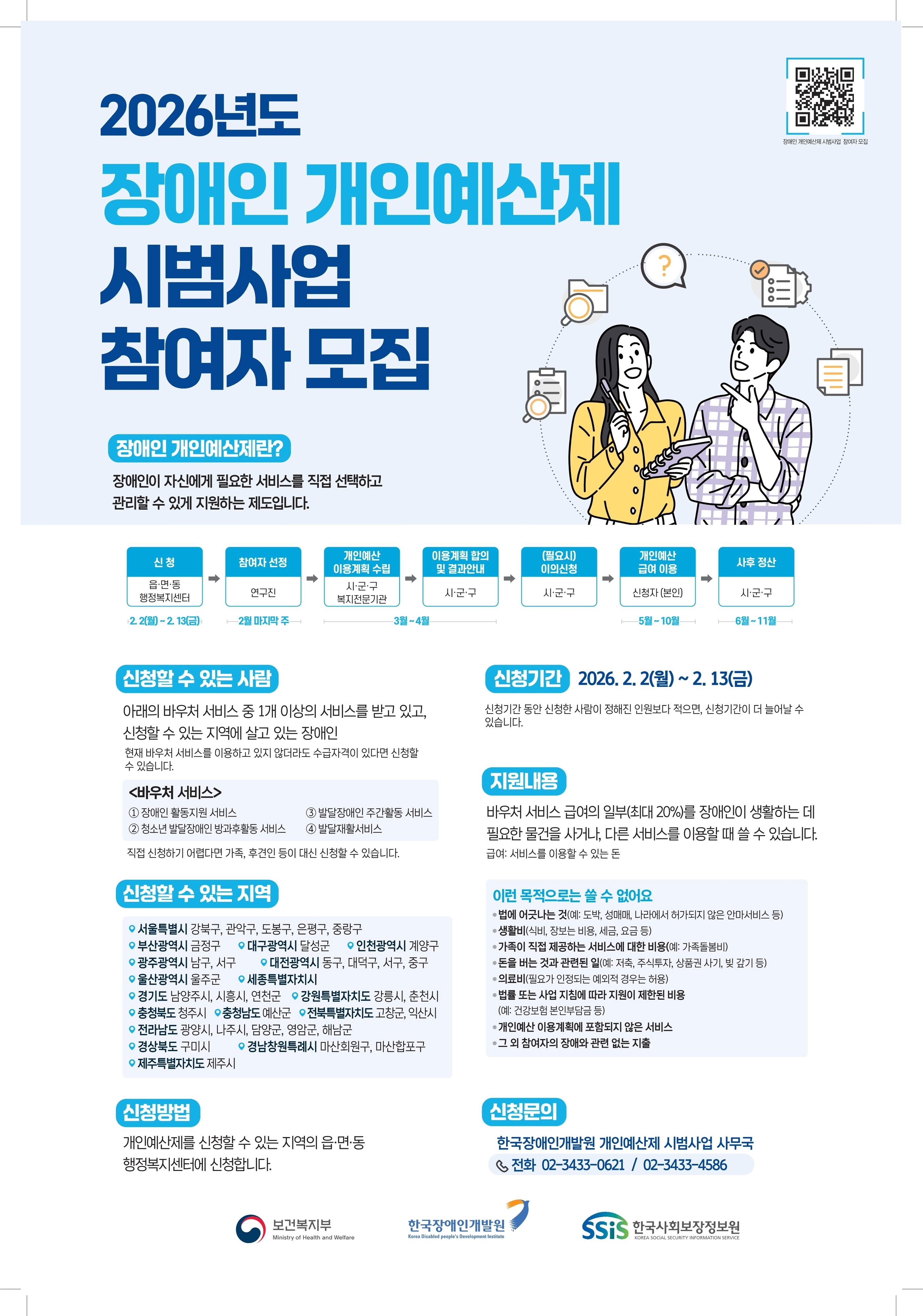 군 관계자는 “이번 시범사업을 통해 장애인의 자기 결정권이 한층 강화될 것으로 기대한다”며 “앞으로도 장애인이 일상에서 체감할 수 있는 맞춤형 복지체계를 구축하는 데 최선을 다하겠다”고 밝혔다.