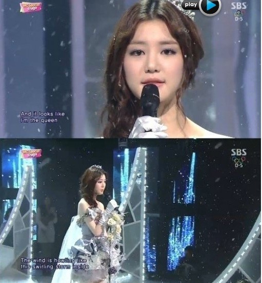 이유비는 2일 오후 방송된 SBS ‘인기가요’에서 애니메이션 ‘겨울왕국’ 주제곡인 ‘let it go’를 부르며 MC 신고식을 치렀다.
