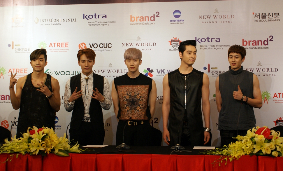 22일 오후 4시(현지시간) 베트남 팬들을 위해 특별한 공연을 준비한 소녀시대, 2PM, 미쓰에이, 씨스타가 호치민시에 위치한 뉴월드 사이공 호텔에서 같은 날 오후 7시에 열리는 ’2014 헥코리아 페스티벌(HEC Korea Festival)을 위해 기자회견에 참석했다.