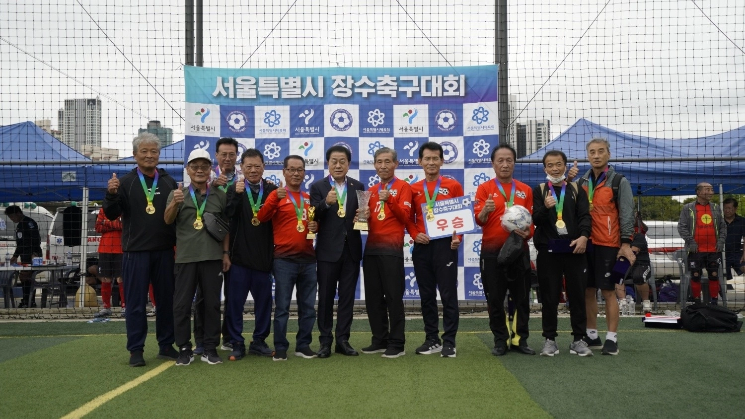 서울특별시의회 도시안전건설위원회 부위원장으로 의정활동하고 있는 김용호 의원(국민의힘, 용산1)은 지난 11일과 12일, 성동구 살곶이체육공원과 응봉축구장, 중랑물재생센터 축구장에서 열린 ‘서울시 7080 장수축구대회’에 참석해 개회식에서는 축하 인사를 전하고, 폐막식에서는 70대B조 우승팀에게 직접 트로피와 우승컵을 수여했다.