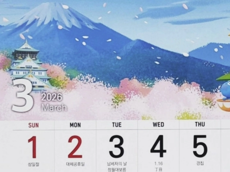 “독립정신 어디로” 삼일절 위에 日후지산·오사카성이 ‘우뚝’…달력 논란
