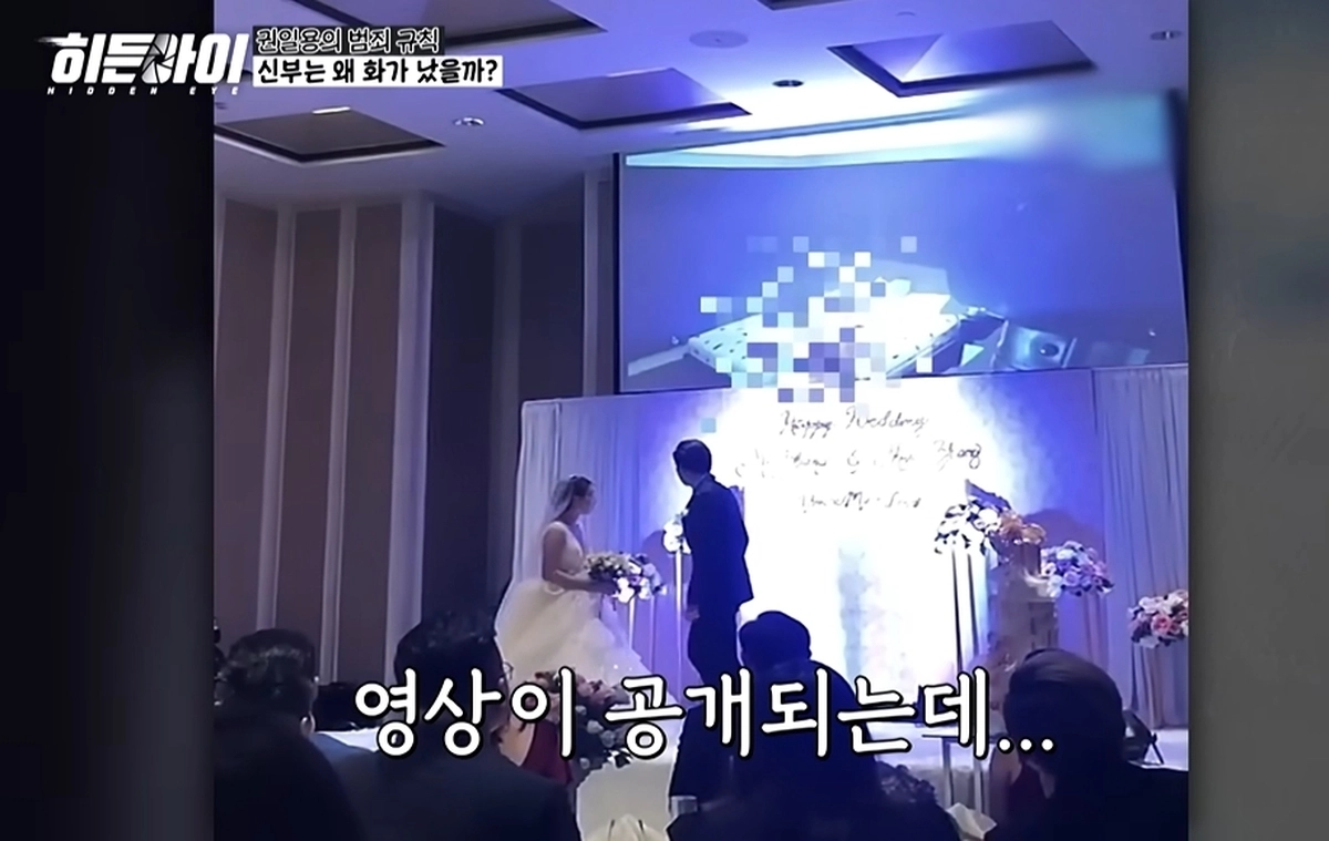 방송에 따르면 결혼식 당일, 신랑과 신부가 하객들의 축하를 받으며 입장한 뒤 돌연 영상이 상영됐다. 이를 본 신부는 격하게 반응하며 신랑을 향해 부케를 던지는 등 현장이 소란스러워졌다.
