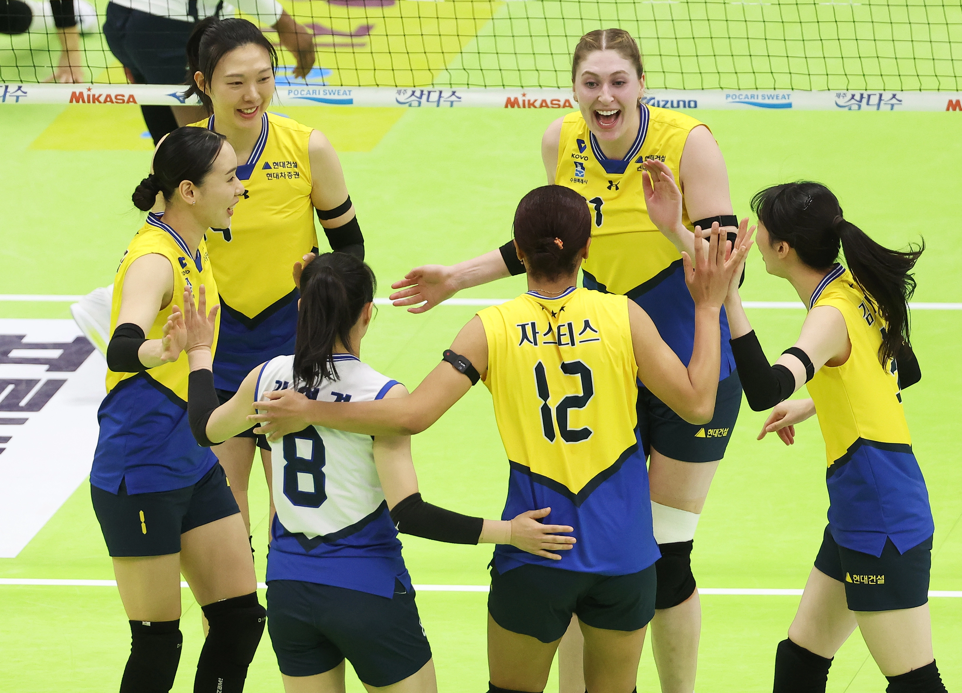 현대건설에서는 외국인 주포 카리가 블로킹 3개를 포함해 팀 내 최다인 27득점을 책임졌고, 아시아 쿼터 선수 자스티스도 서브에이스 3개와 블로킹 1개를 합쳐 19득점을 보탰다. 베테랑 양효진과 이예림이 각각 11득점과 9득점을 올리는 등 주전이 고르게 활약했다.
