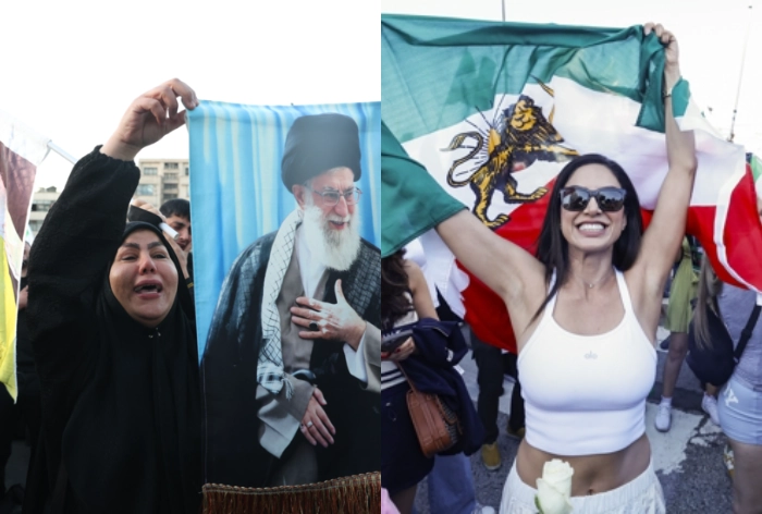 미국이 지난달 28일(현지시간) 이란을 공습해 최고지도자 아야톨라 세예드 알리 하메네이가 사망하자 세계의 반응은 엇갈렸다. 이란 정부가 하메네이 사망을 공식 확인한 1일 한 이란 여성이 테헤란 엔켈랍 광장에서 하메네이의 초상을 든 채 애도하고 있다(왼쪽 사진). 오른쪽 사진은 같은 날 미국 캘리포니아주 로스앤젤레스에서 한 여성이 1979년 이슬람 혁명 이전에 사용하던 이란의 옛 국기를 흔들며 웃고 있는 모습.