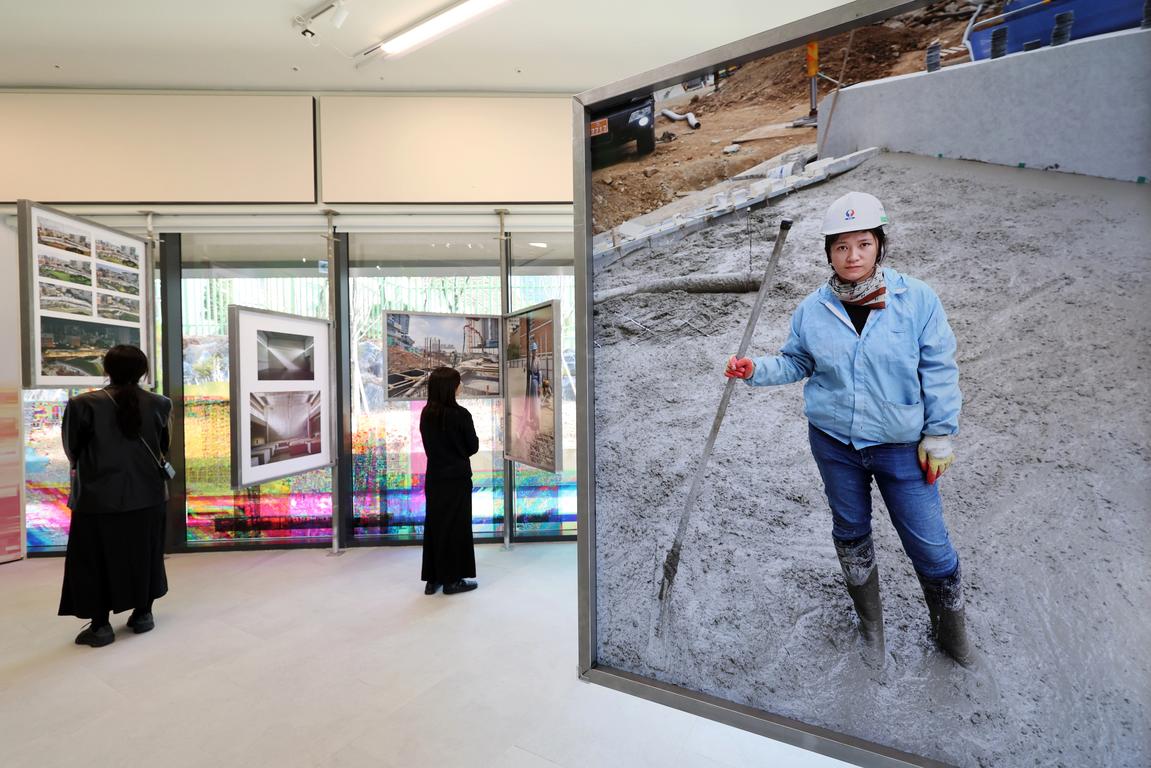 서울 최초의 공공 뉴미디어 특화 미술관 서서울미술관이 12일 금천구 금나래중앙공원 안에 문을 열었다. 관람객들이 미술관 건립 과정을 조명한 건립기록전 ‘우리의 시간은 여기서부터’를 관람하고 있다. 뉴시스