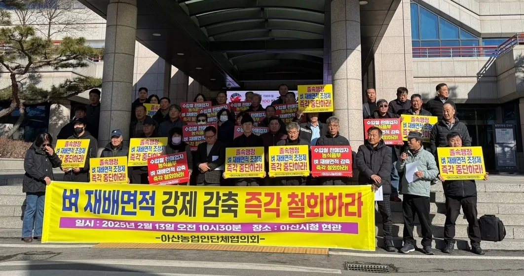 농민회 등 10여 개 농업단체가 소속된 아산시농업인단체협의회는 기자회견을 열고 “농민과 합의 과정도 없이 정부가 대안도 없이 일방적으로 벼 재배면적 감축을 추진하고 있다”며 “ 정부가 식량주권 고려도 없이 쌀 자급률 붕괴를 부채질하는 농정말살 정책을 펴고 있다”고 했다.