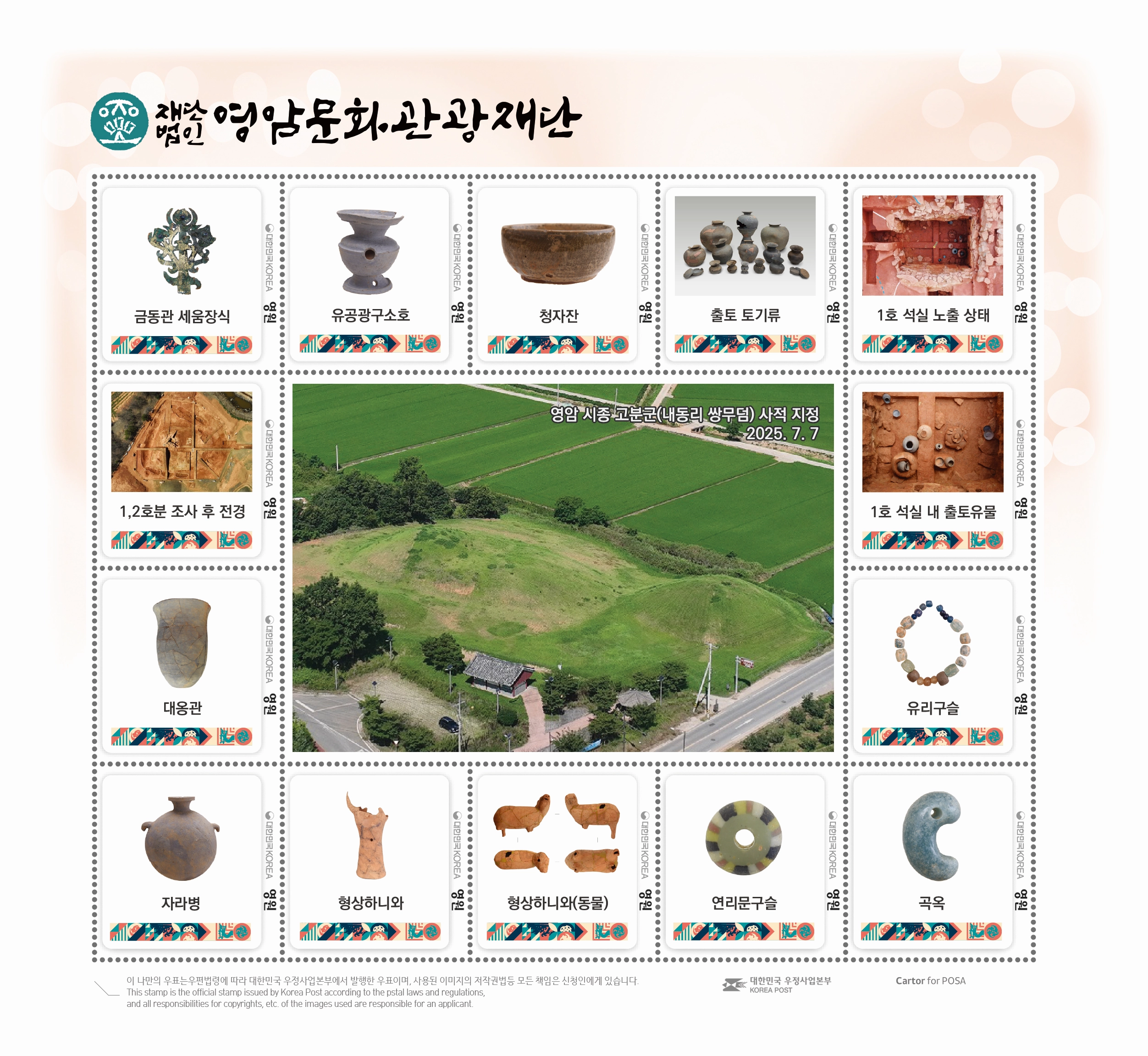 고분군의 역사적·학술적 가치를 전국적으로 널리 알리기 위해 기획된 기념우표는 오는 14일 오후 ‘2025 마한역사문화제’ 개막식과 함께 영암프렌즈샵에서 판매를 시작한다.