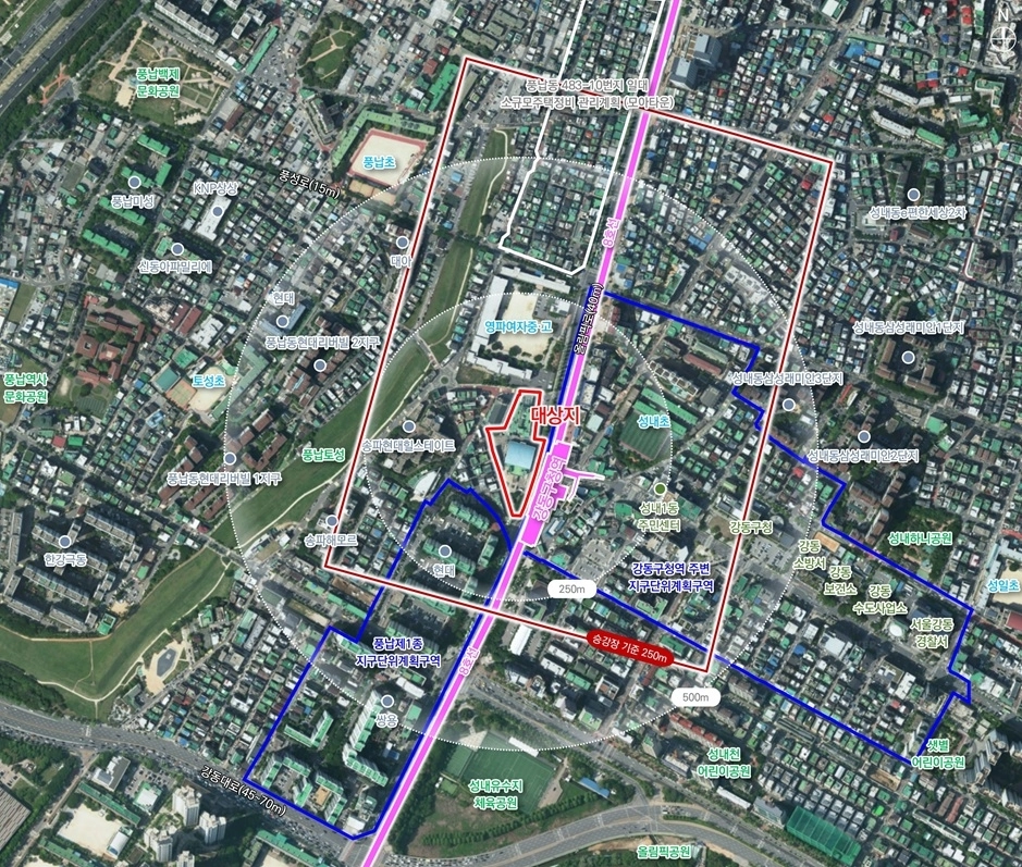 서강석 구청장은 “이번 대상지 선정은 문화재 보호 규제로 오랜 시간 개발에서 소외됐던 주민들에게 매우 기쁜 소식”이라며 “풍납동 일대 역세권 활성화 사업 추진을 통해 역사적 가치를 존중하면서도 현대적인 도시 기능을 갖춘 고밀 복합개발을 추진, 풍납동에 새로운 활력을 불어넣겠다”고 밝혔다.