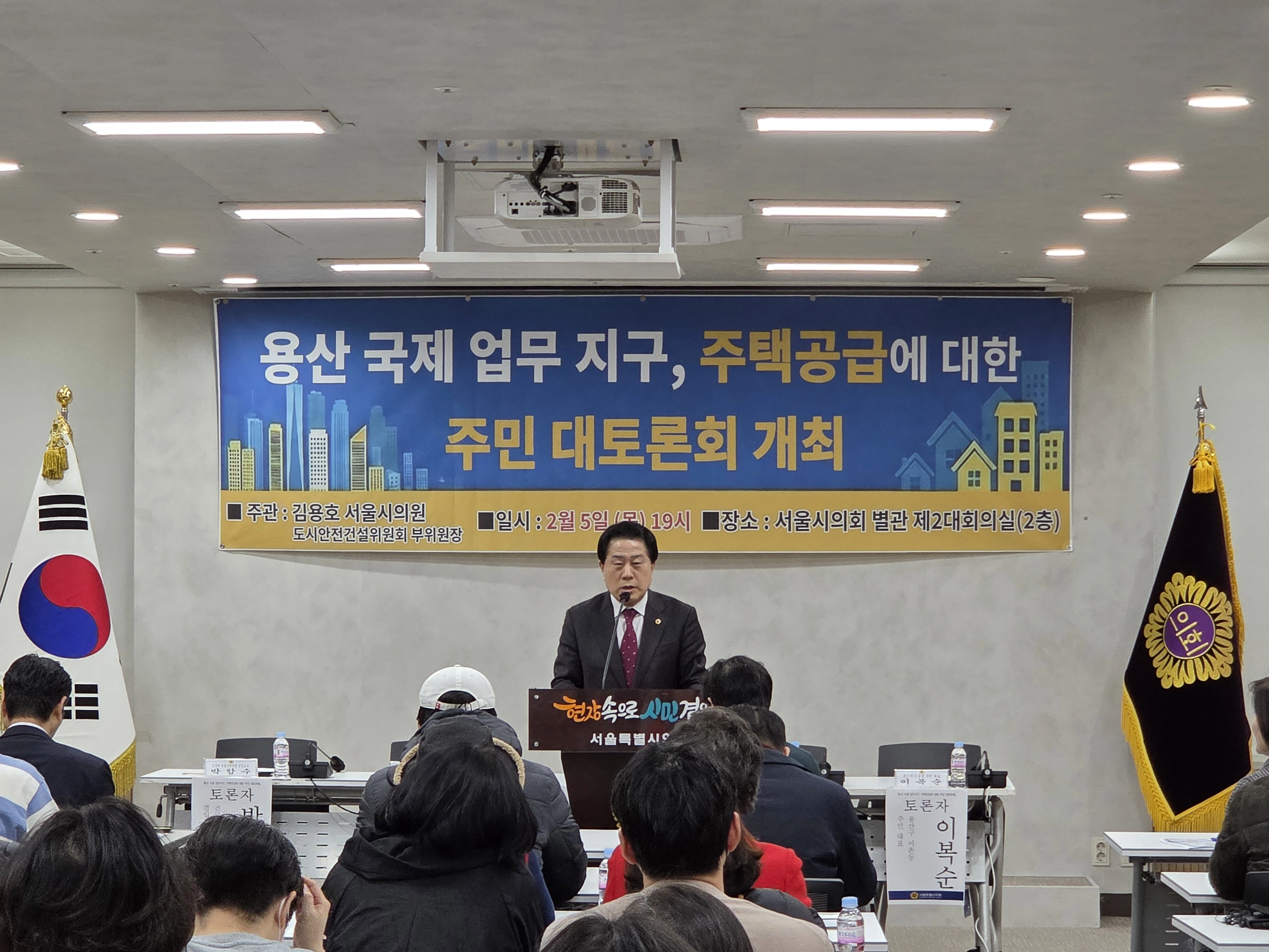 서울특별시의회 도시안전건설위원회 부위원장으로 활동하고 있는 김용호 의원(국민의힘, 용산1)은 지난 5일 서울시의회 별관 제2대회의실에서 ‘용산국제업무지구 주택공급에 대한 주민 대토론회’를 개최했다.