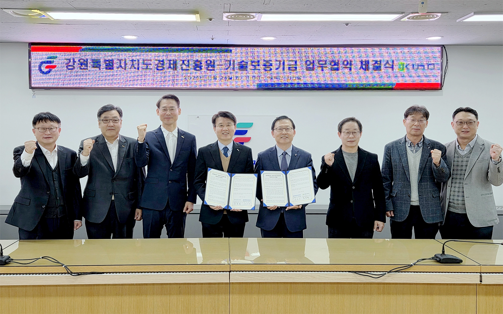 기술보증기금(이하 기보)은 지난 25일 강원특별자치도 원주시에 위치한 강원특별자치도경제진흥원(이하 진흥원) 본원에서 ‘강원특별자치도 기술창업기업 육성을 위한 기술금융지원 업무협약’을 체결했다고 26일 밝혔다.