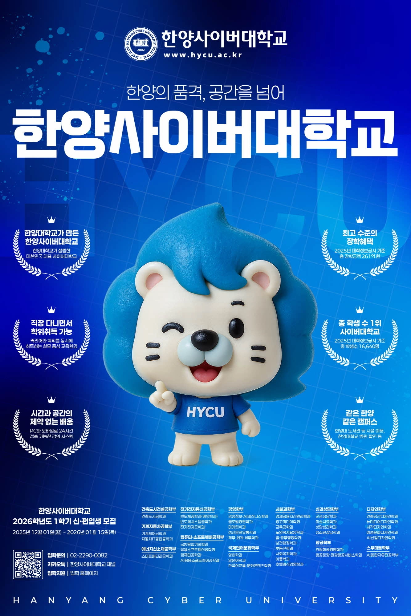광고의 중심인 푸른 갈기 마스코트는 ‘한양의 품격, 공간을 넘어’라는 메인 카피 아래, 교육의 문턱을 낮추고 학습자와 감성적으로 교감하는 새로운 교육의 상징으로 기획되었습니다.