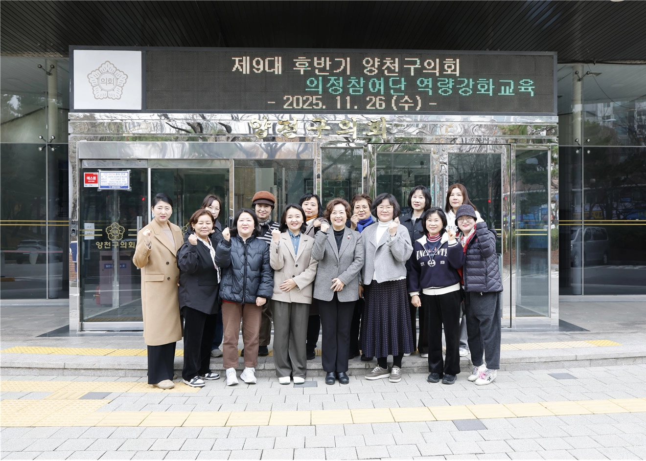 양천구의회는 지난 26일 오후 구의회 1층 회의실에서 의정참여단을 대상으로 ‘2025년 하반기 역량강화 교육’을 실시했다.