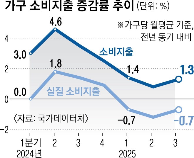 소비쿠폰 풀었지만… 실질 소비 3분기째 마이너스