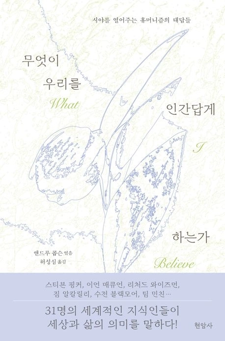 저자는 팟캐스트 ‘나는 이렇게 믿는다’를 진행하면서 세계적인 지식인 31명을 만나 삶에 대한 질문을 던졌다. 과학자, 심리학자, 작가, 역사학자, 철학자, 언론인, 예술가 등 다양한 직업을 가진 이들의 공통점은 모두 휴머니스트라는 것이다.