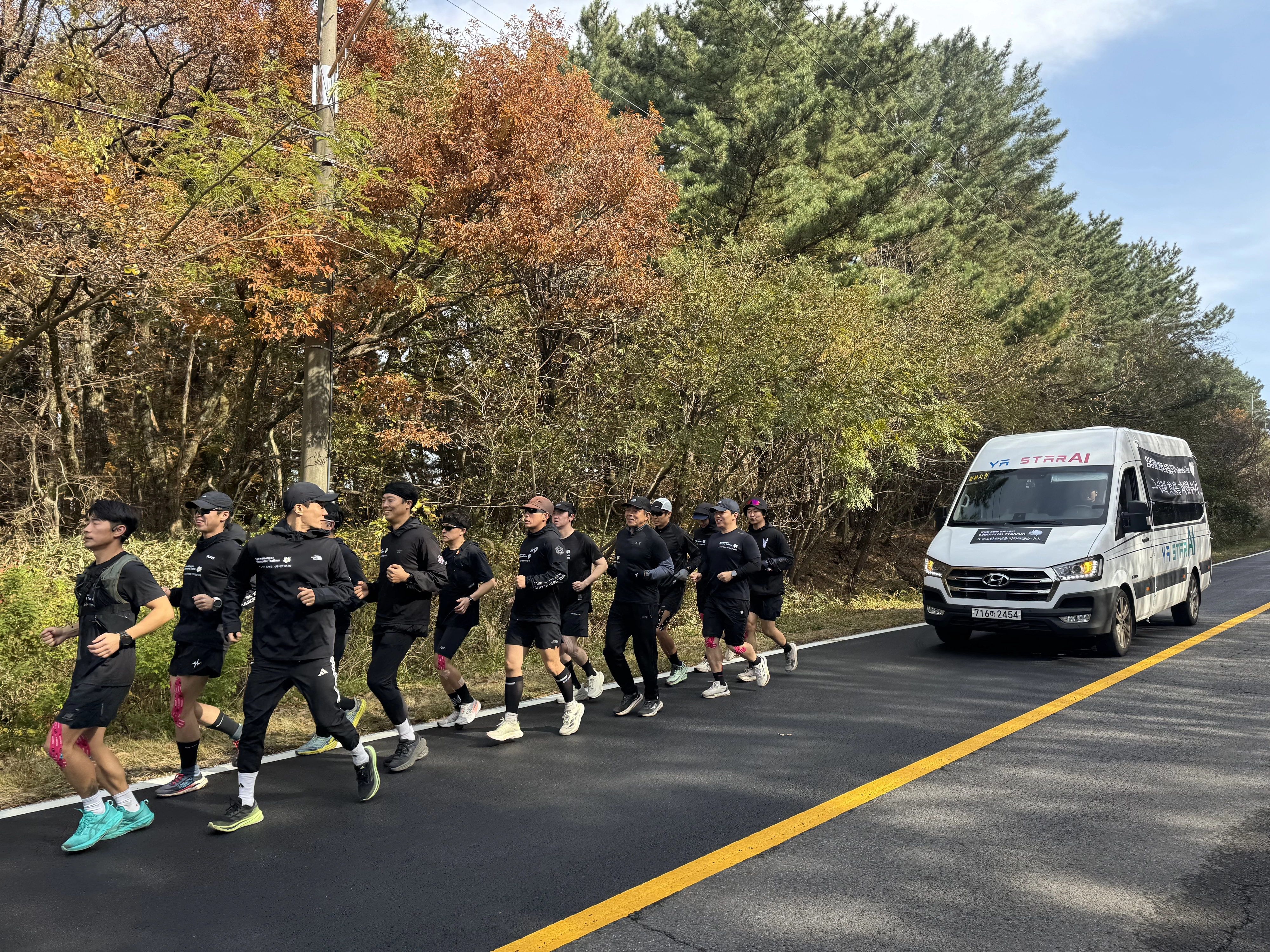 새벽 5시 20분 옛 청사를 출발해 가시리와 수망리, 사려니숲길과 절물조릿대길을 지나, 관음사 탐방안내소를 거쳐 제주국립호국원에 이르렀다. 최종 도착지인 제주국립호국원에 다다른 시간은 오후 1시 40분. 8시간 19분 53초 만에 도착했다. 스텝 11명이 곁에서 도왔다.