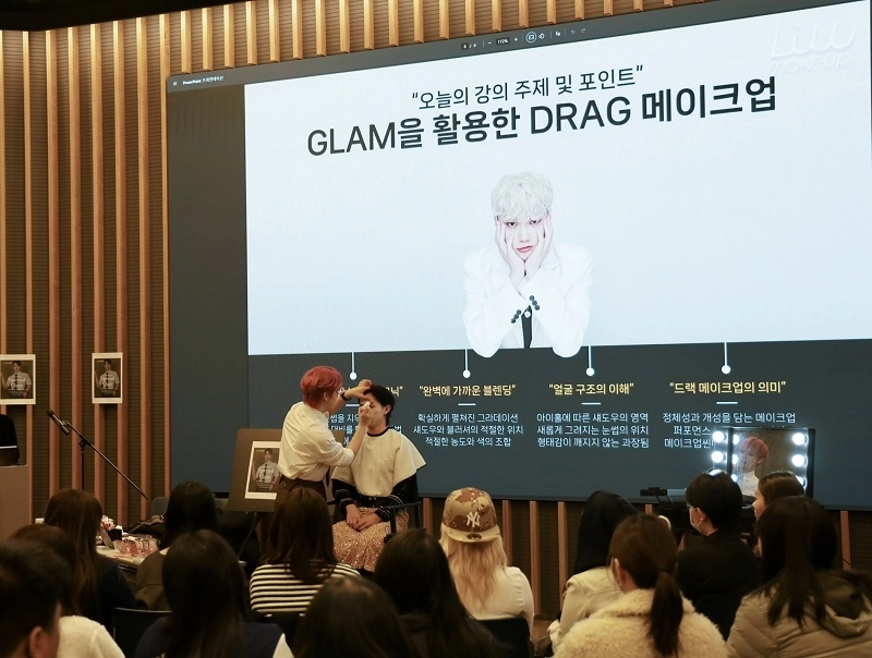 이어 11월 24일 청강홀에서 진행된 스페셜 클래스에서는 성수동 프린스 리우 원장이 글램 요소를 활용한 드랙 메이크업 스타일링을 선보였다. 리우 원장은 대담함과 섬세함이 공존하는 특유의 스타일을 기반으로 새로운 미적 접근 방식을 제시해 학생들의 호응을 이끌었다.