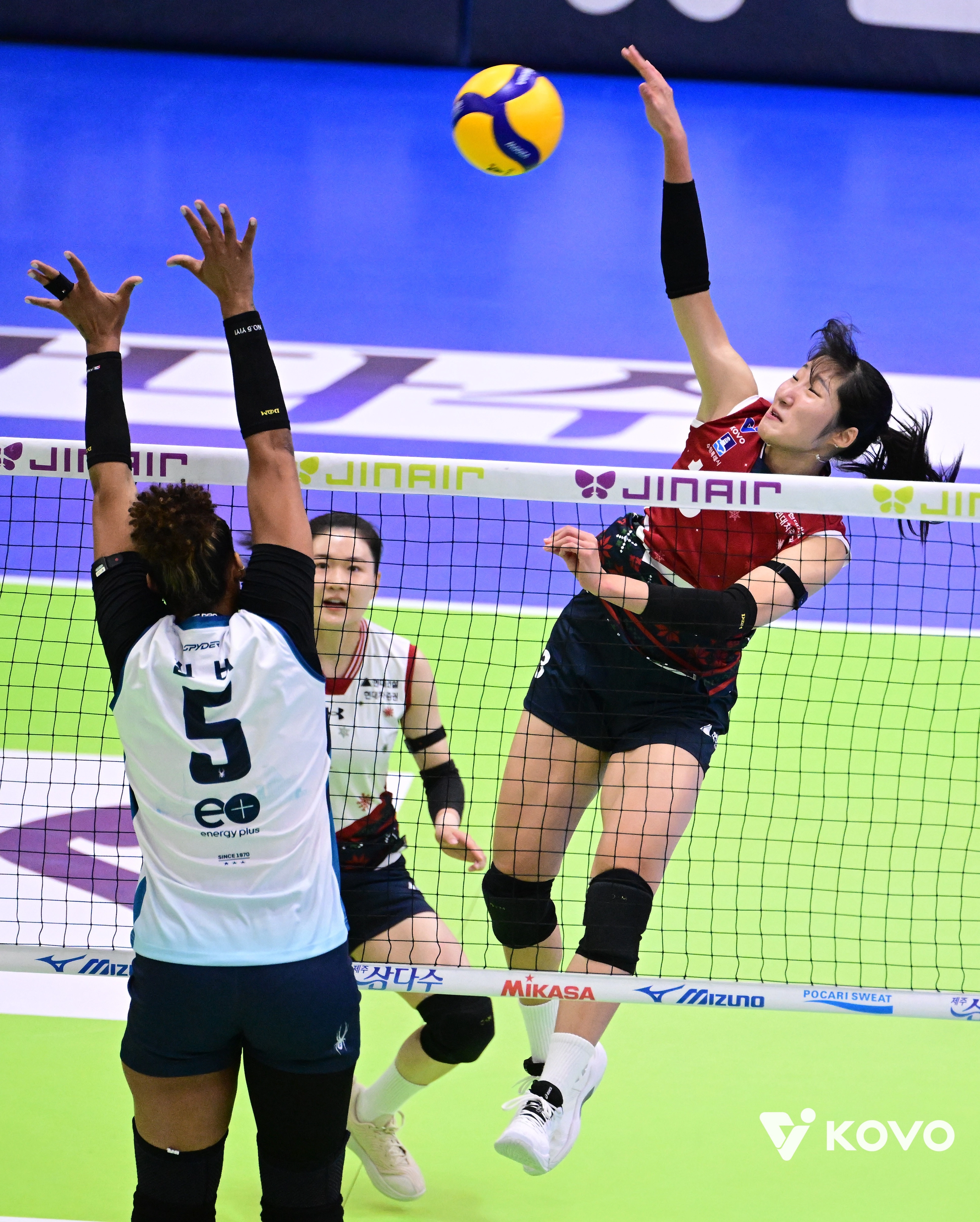 정지윤은 3세트 24-18 매치 포인트에서도 실바의 백어택을 블로킹으로 막아내며 경기에 마침표를 찍었다.