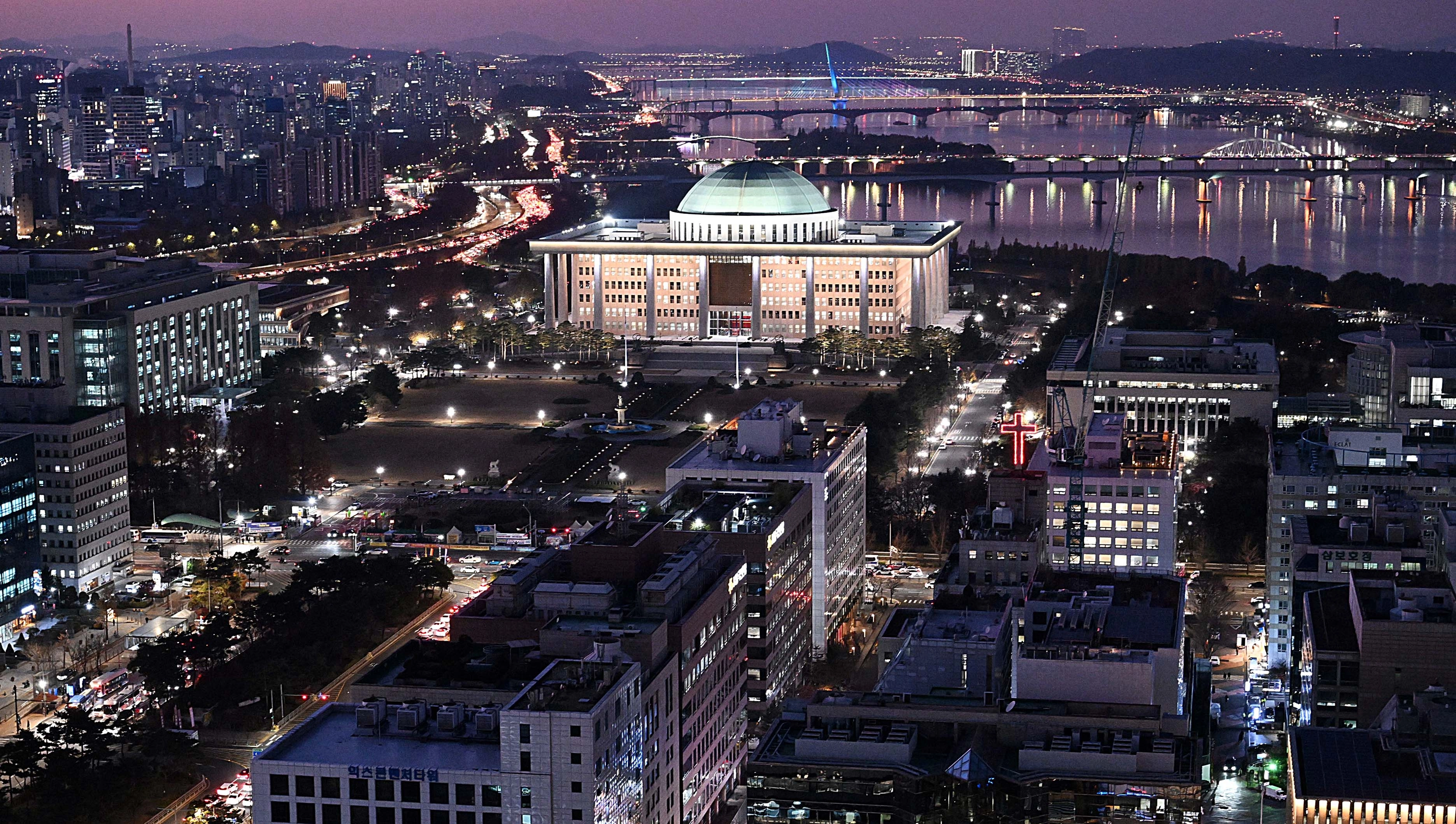 전 국민을 혼돈으로 몰아넣은 12·3 비상계엄이 1년을 맞았다. 계엄의 밤이 약 6시간 만에 막을 내린 것은 국회 안팎에서 맨몸으로 맞서 싸운 시민들이 있었기 때문이다. 이들은 한목소리로 “다시는 이런 일이 일어나지 않아야 한다”며 민주주의의 심화를 염원했다. 사진은 지난달 30일 환하게 불을 밝힌 서울 영등포구 국회의사당의 모습. 안주영 전문기자