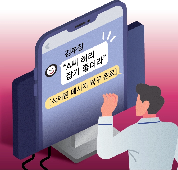 최근 국내 한 기업의 여성 직원은 저녁 회식 자리에서 남성 상사 2명에게 신체 접촉을 당해 인사팀에 신고했다. 회사는 사실관계 확인을 위해 한 대형 로펌에 디지털포렌식을 의뢰했다. 포렌식 결과 이 남성들이 속한 카카오톡 대화방에서 “A씨 허리가 잡기 좋더라”는 등의 성적인 대화가 오간 사실을 적발했고, 회사는 사내 징계로 결론 내렸다.