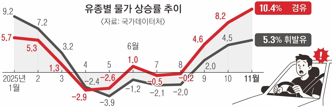 휘발유 대비 상승폭 2배 부담