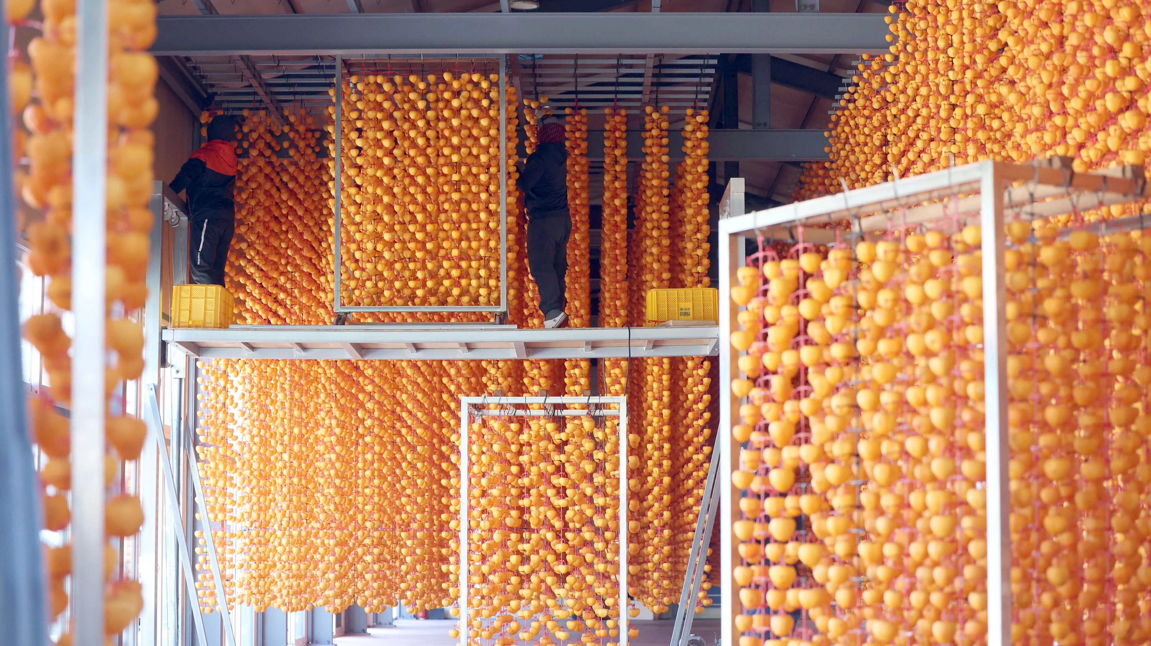 본격적인 추위가 시작된 3일 경남 산청군 단성면의 한 곶감 덕장에서 산청 고종시(떫은감) 곶감 건조가 한창이다. 10년 연속 대한민국 대표 과일로 뽑힌 산청 고종시 곶감은 지리산의 큰 일교차 속에서 수없이 얼고 녹기를 반복해 껍질이 얇고 당도가 높으며 특유의 찰진 식감을 자랑한다. 산청 연합뉴스