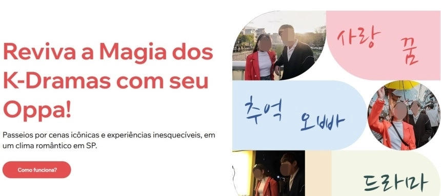 해당 홈페이지에 접속하면 ‘오빠와 함께 K드라마의 마법을 다시 느껴보세요!’라는 선전 문구와 함께 ‘상파울루의 로맨틱한 분위기 속에서 잊지 못할 경험’을 선사한다는 취지의 글을 확인할 수 있다.
