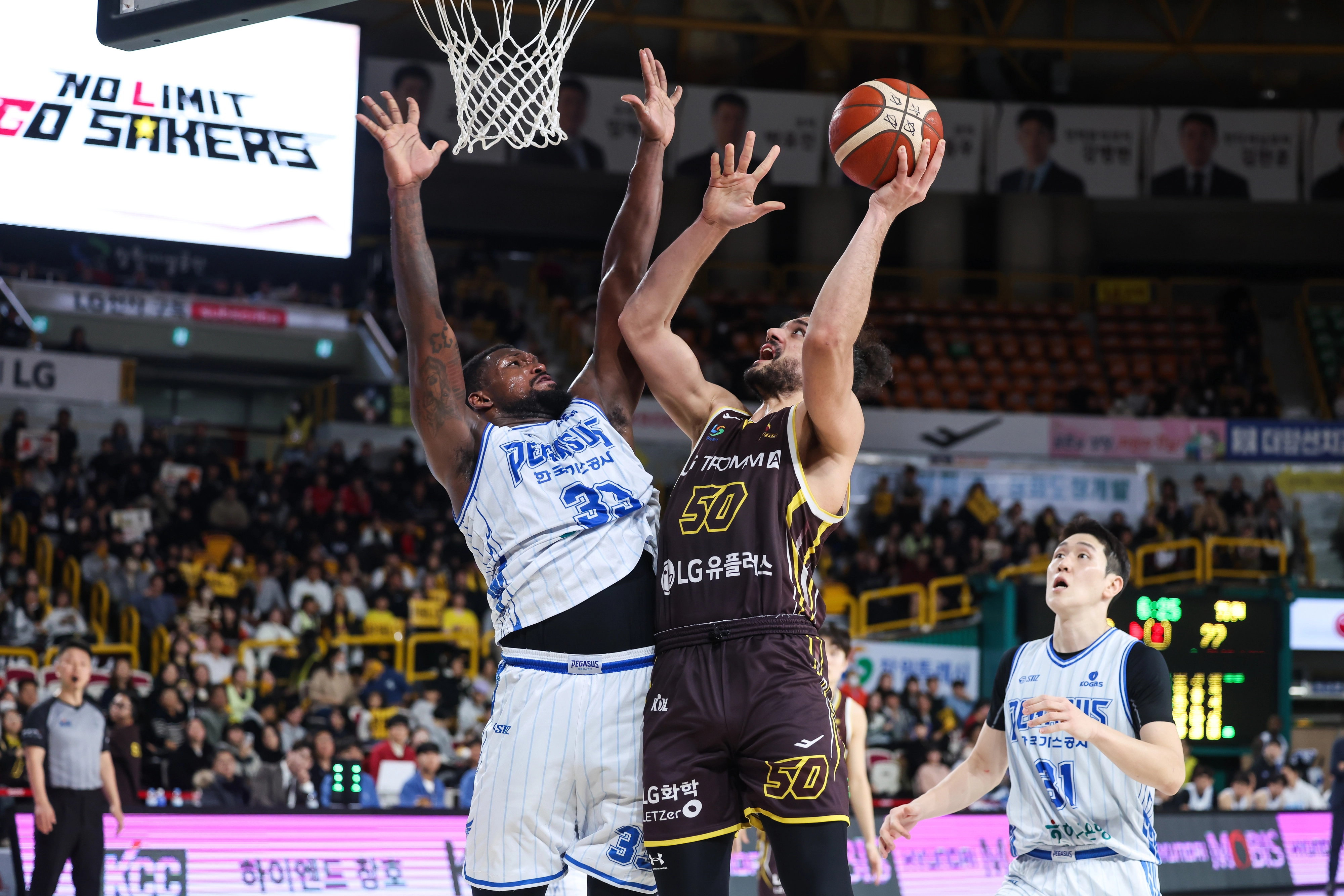 LG의 아셈 마레이의 골밑 공격에다 유기상과 정인덕에서 3점포를 얻어 맞으며 66-64까지 추격을 허용했다. 가스공사는 종료 15.9초를 남기고 마레이에게 자유투 2개를 허용해 동점 위기에 몰렸지만 마레이의 자유투가 모두 림을 외면하고 이어 얻은 공격 리바운드에서도 득점하지 못하면서 선두를 잡는 이변에 마침표를 찍었다. 신승민이 14점에 6리바운드, 닉 퍼킨스가 11점 6리바운드로 벨란겔과 함께 공격을 이끌었다. 라건아는 9점에 11리바운드로 골밑을 책임졌다.