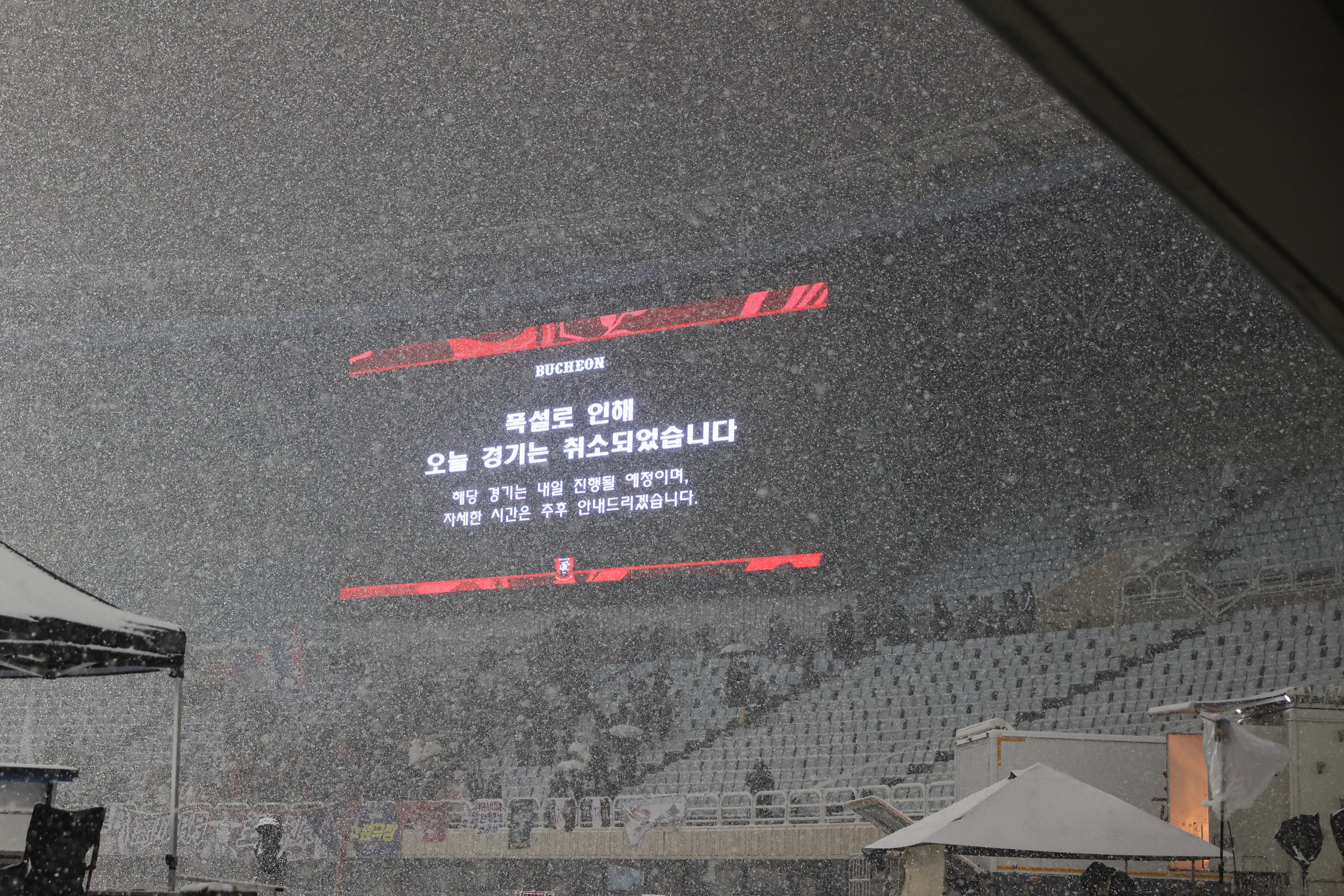 수원FC는 K리그1 10위, 부천은 K리그2 3위로 승강 PO에서 맞붙게 됐다. 1차전은 원래 4일에 열릴 예정이었지만 폭설로 하루 미뤄졌다. 전날 부천에 킥오프 두 시간 전부터 폭설이 내리면서 경기감독관이 안전상 경기 진행이 어렵다고 판단했다. 연맹에 따르면 기록을 전산화한 2010년 이후 강설로 경기가 취소된 건 처음이다.