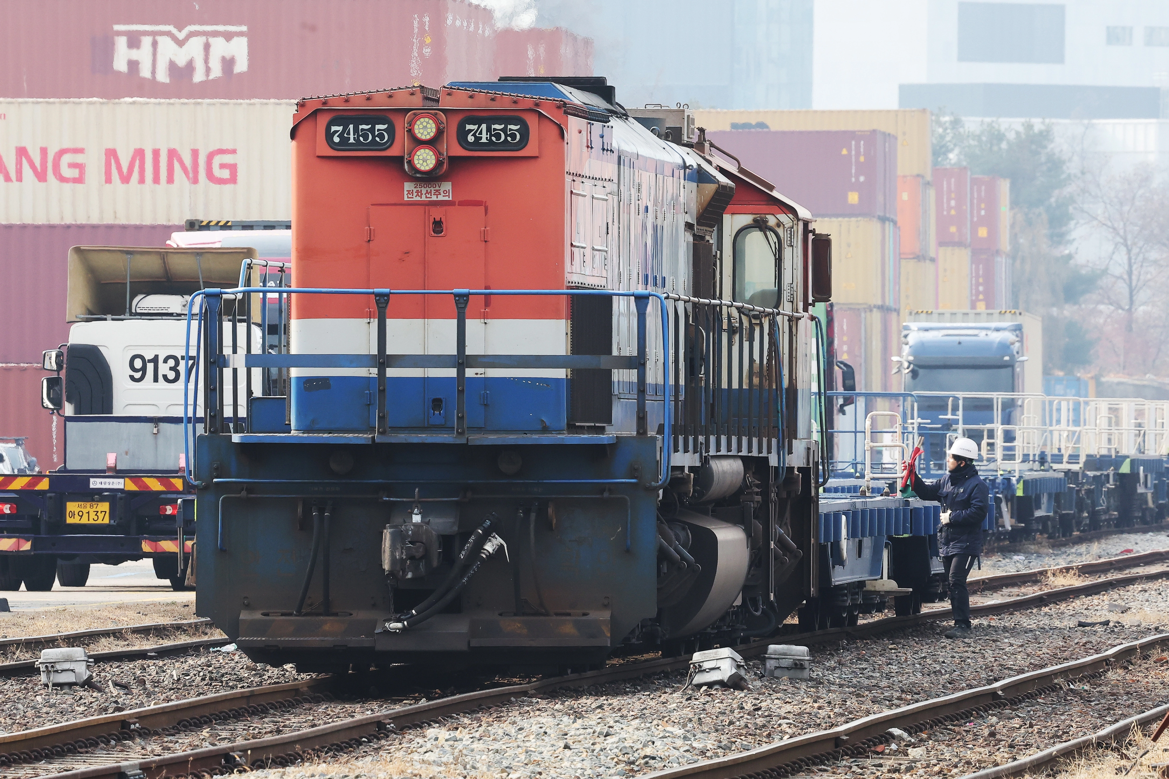 민주노총 공공운수노조 전국철도노동조합이 예고한 총파업을 하루 앞둔 10일 경기 의왕시 내륙컨테이너기지(ICD)에서 화물열차가 이동하고 있다. 2025.12.10 연합뉴스,