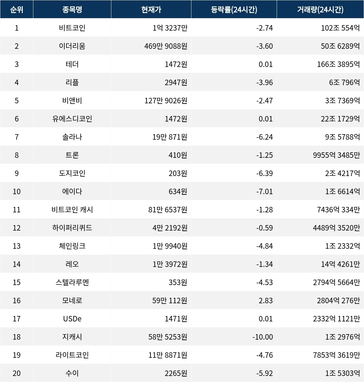 전반적으로 주요 가상자산들이 하락세를 보이고 있으며, 투자자들은 변동성에 주의할 필요가 있다.