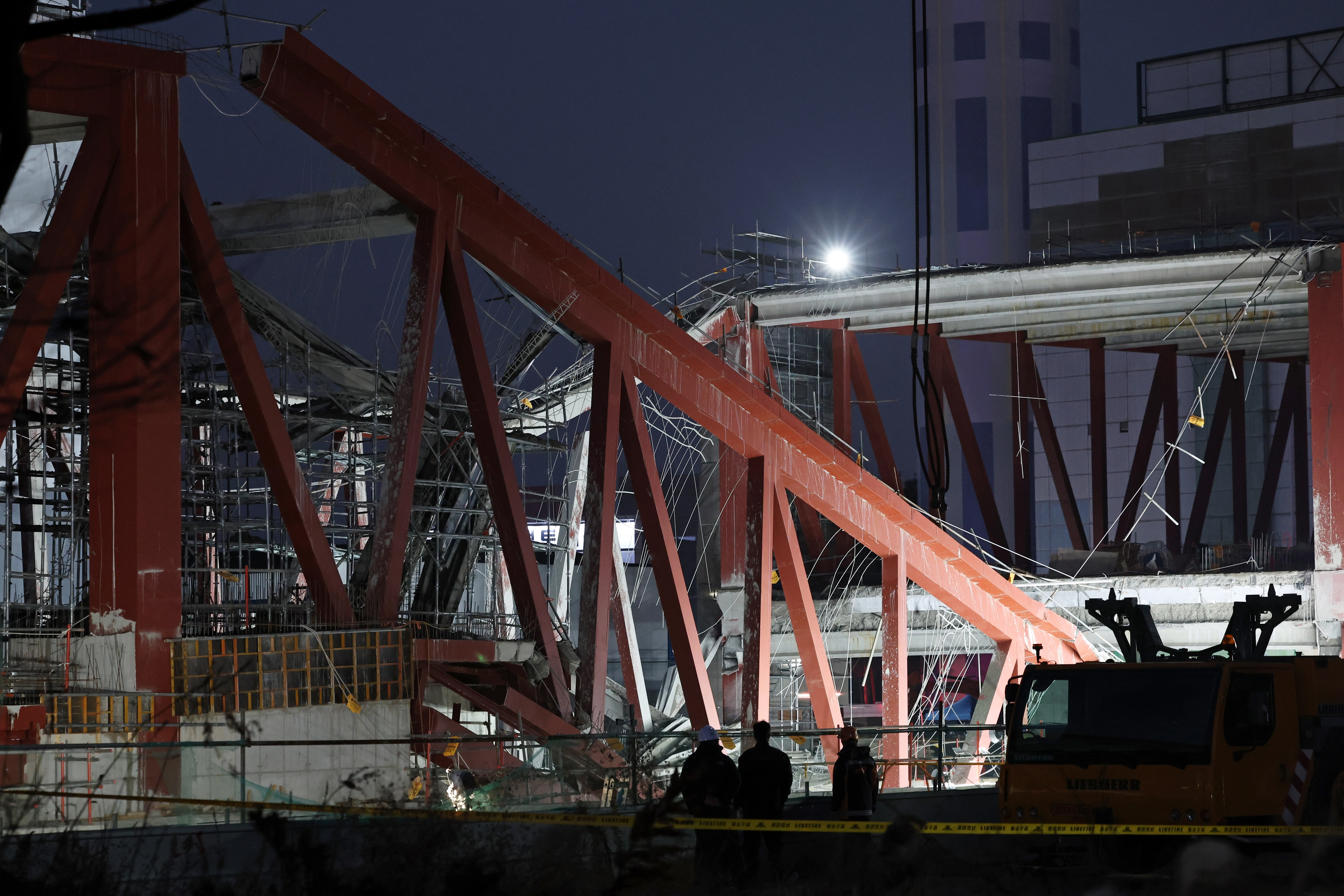 소방당국은 추가 붕괴 위험을 고려해 안전 조치를 강화하면서 야간 수색을 진행하고 있다.