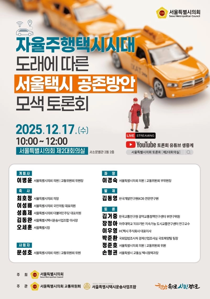 서울시의회 교통위원회, ‘자율주행택시시대 도래에 따른 서울택시 공존방안 모색 토론회’ 개최