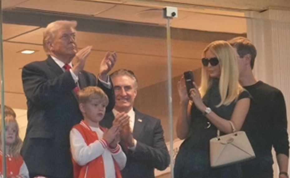 도널드 트럼프(왼쪽) 미국 대통령이 공휴일(마틴 루서 킹 데이)인 19일(현지시간) 플로리다주 마이애미 가든스의 하드록 스타디움에서 열린 대학미식축구 결승전을 관람하고 있다. 딸 이방카와 손녀 카이 등 가족과 댄 스커비노 부비서실장, 마코 루비오 국무 장관이 함께했다. 마이애미 가든스 로이터 연합뉴스