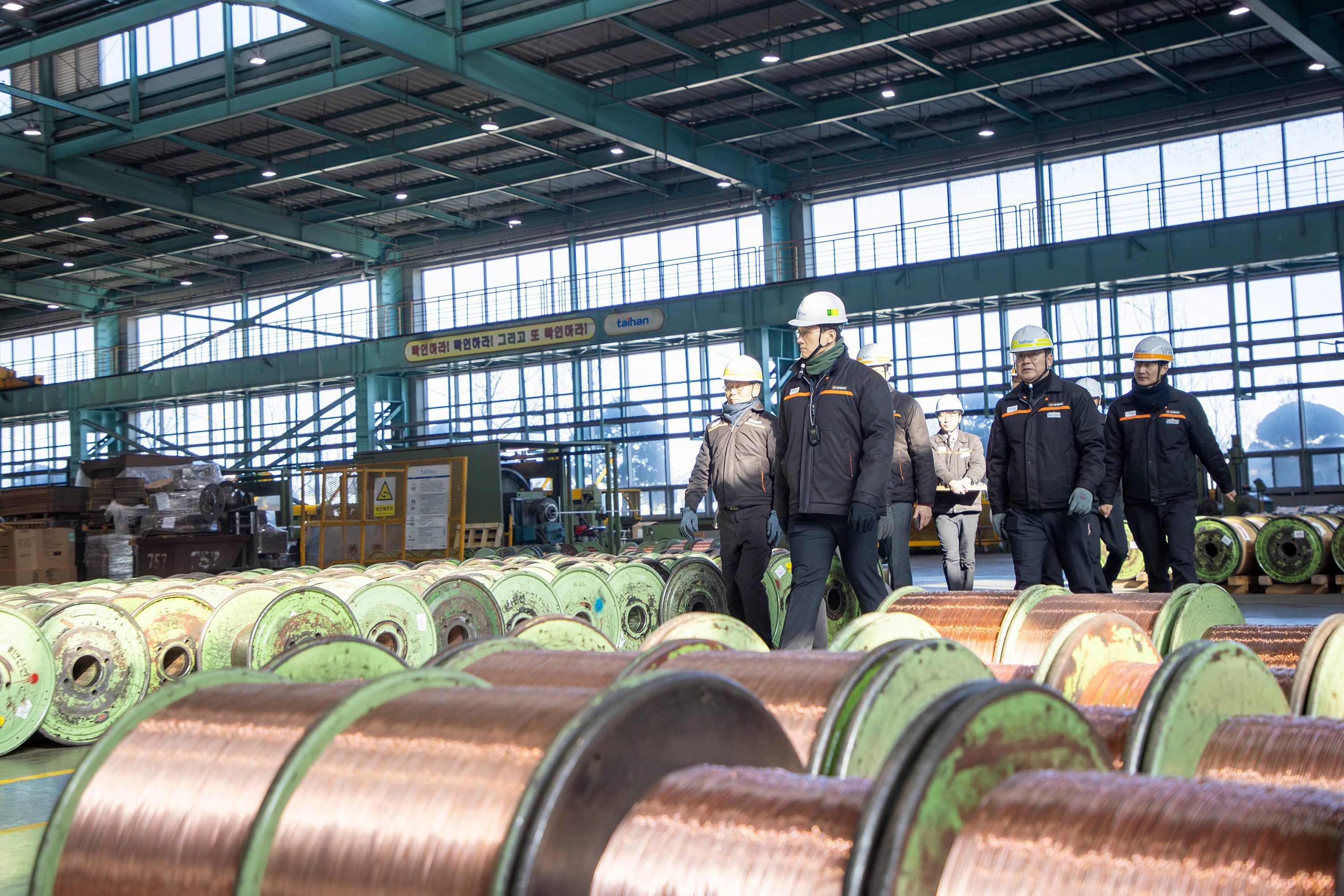 김대헌 호반그룹 기획총괄사장이 새해 첫 현장경영으로 대한전선 당진공장을 찾아 초고압·해저케이블 사업 현황을 점검했다.