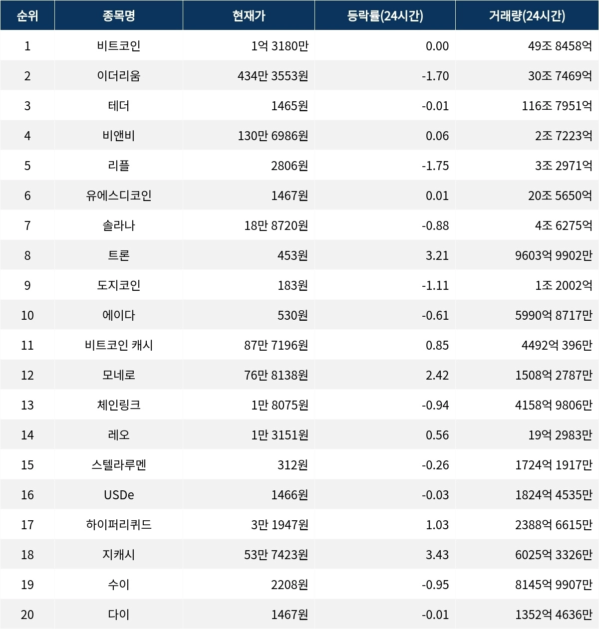 한편, 솔라나는 18만 8720원으로 -0.88% 하락했다. 시가총액은 106조 7833억 원이다. 같은 시각 트론은 453원으로 3.21% 상승했으며, 거래량은 9603억 9902만 원이다. 도지코인은 183원으로 -1.11% 하락했으며, 시가총액은 30조 9874억 원이다.