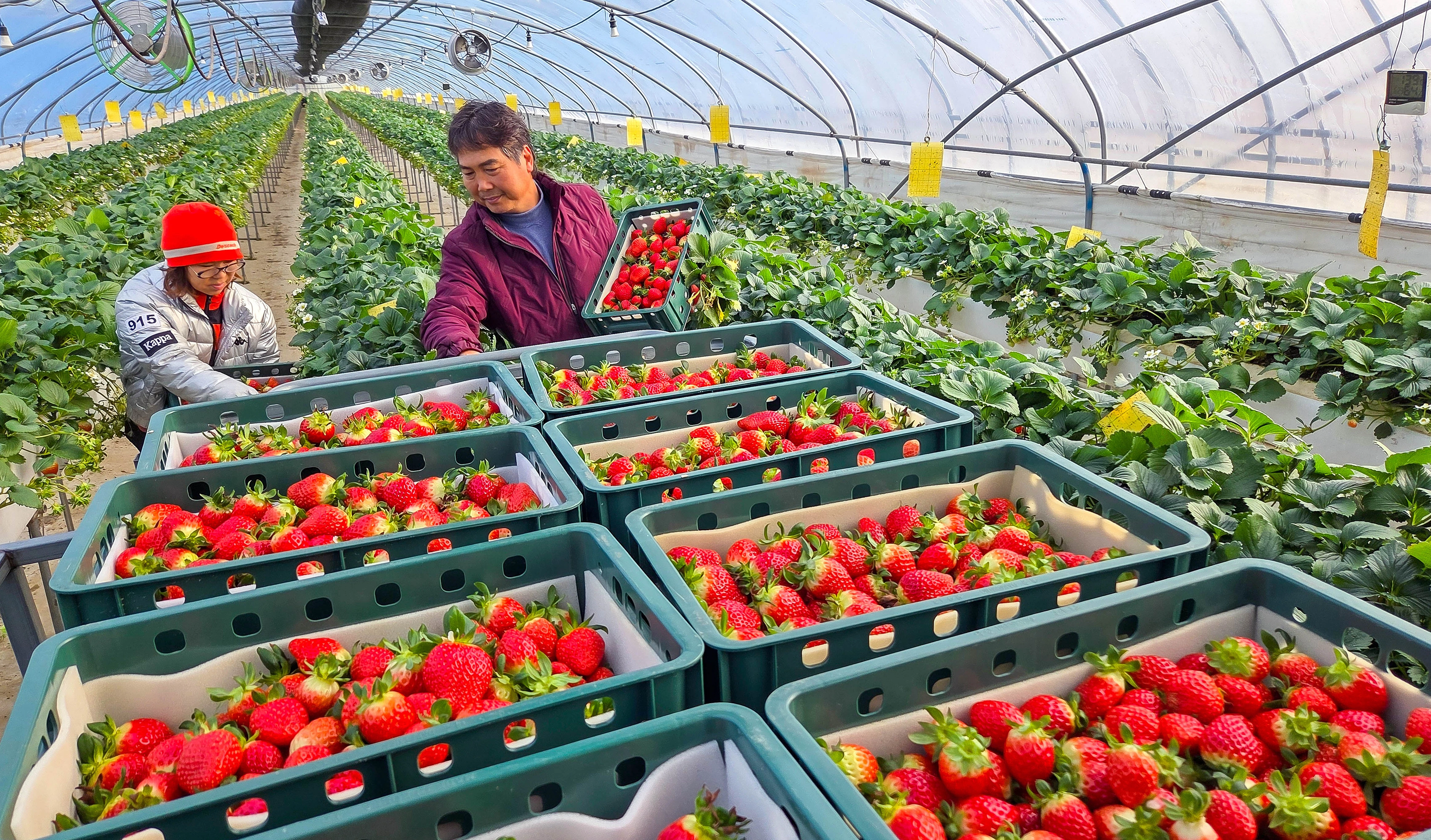 광주 북구의 대표 특산품 중 하나로 꼽히는 지산딸기가 본격적인 수확기를 맞아 농민들이 26일 효령동의 한 하우스에서 잘 익은 딸기를 따서 담고 있다. 광주 연합뉴스