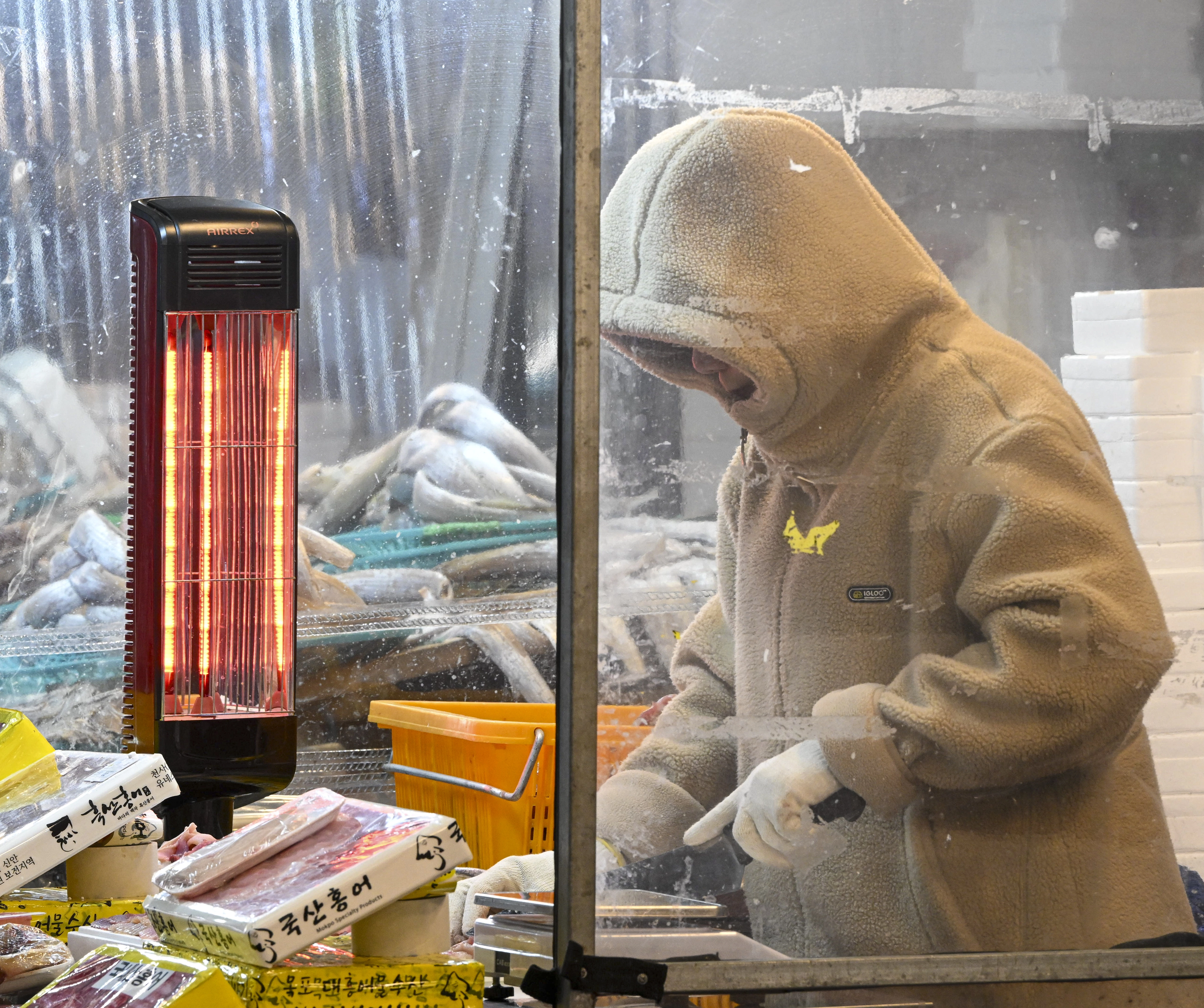 올해 전통시장의 겨울은 유난히 춥습니다. 한 상인이 전남 목포의 한 수산물 시장에서 전열기를 켠 채 손님을 기다립니다. 계속된 한파로 발길은 뜸하지만, 상인은 묵묵히 장사 준비를 이어 갑니다. 언젠가 시장이 다시 온기를 되찾길 바랍니다. 이지훈 기자